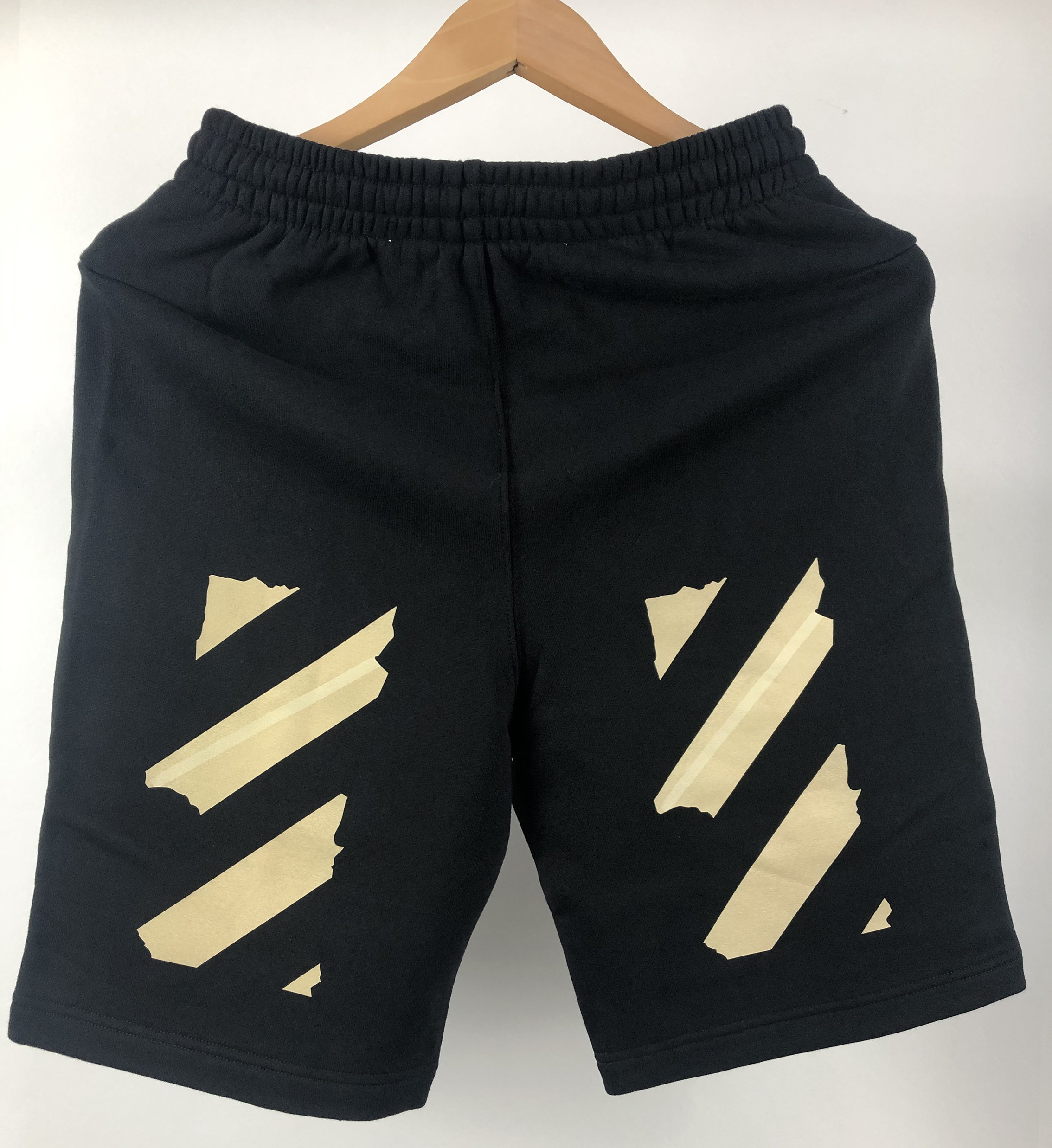 Off Shorts Shorts сова Желтая лента Мужчины и женщины с той же модельной парой в белых повторениях