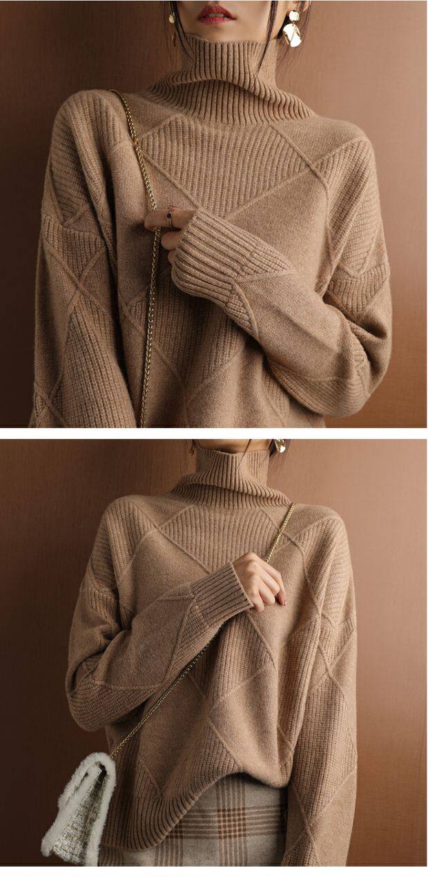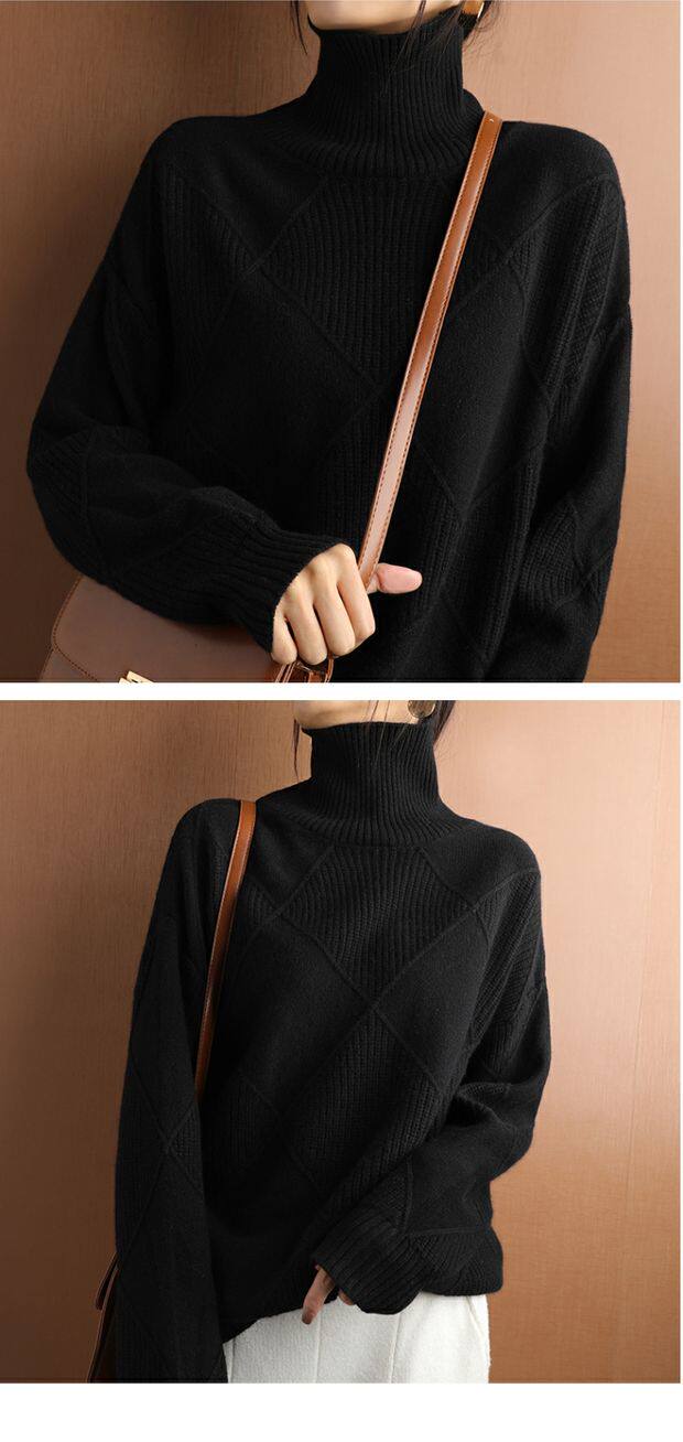 Демисезонный шерстяной однотонный базовый приятный телу свитер, увеличенная толщина