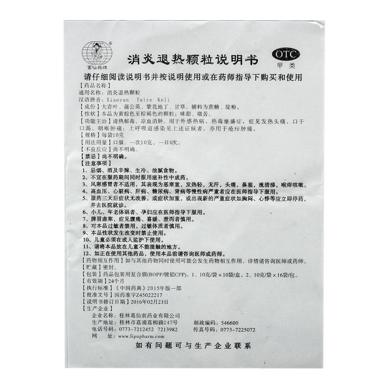 葛仙翁 Анти -инфляционные и деградированные частицы 10 г*10 мешков/коробка болью в горле и боли, инфекция верхней дыхательной тракты с тепловой болью