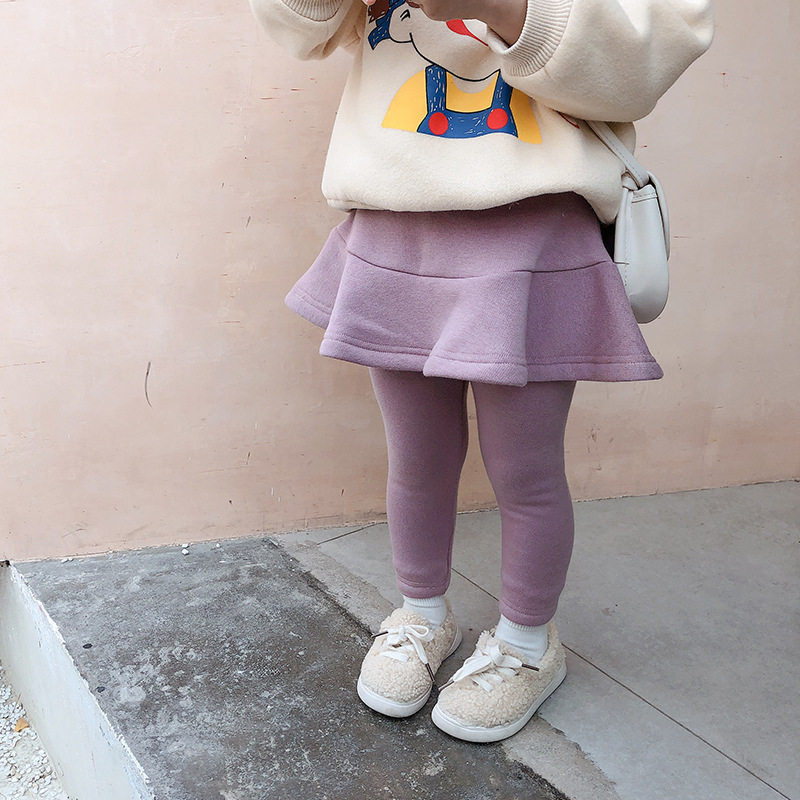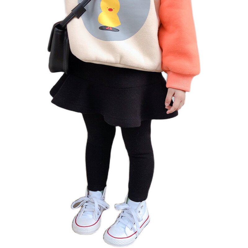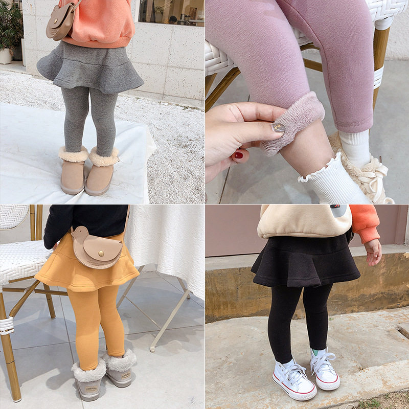 Утепленные леггинсы, детские удерживающие тепло штаны, бархатная неваляшка, базовая юбка, 2020