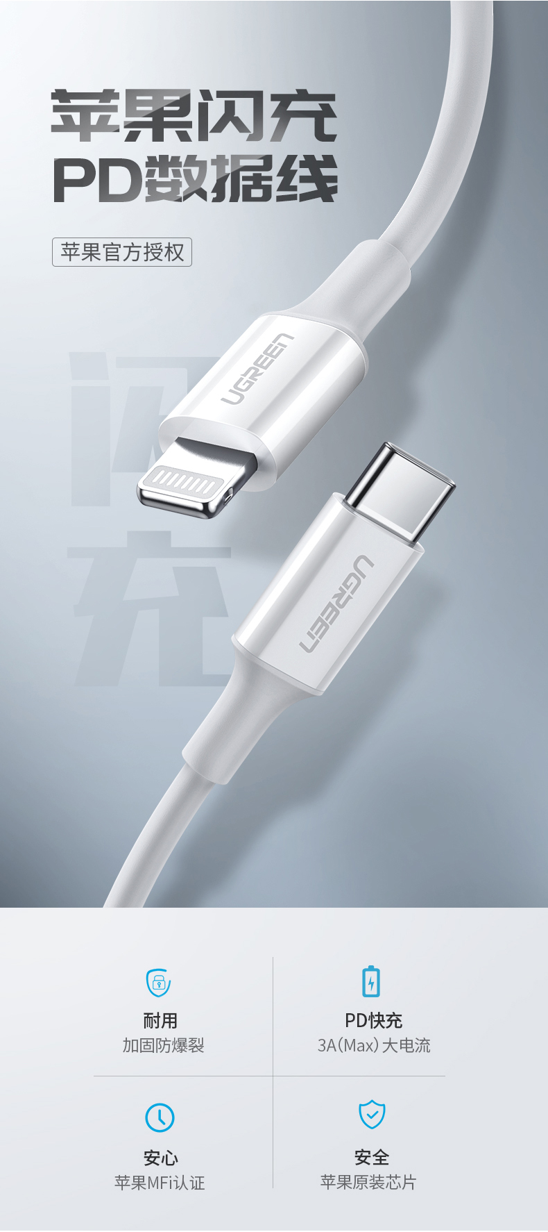 Ugreen Union Apple PD Express Type-C для освещения кабель данных iPhone12 Зарядка