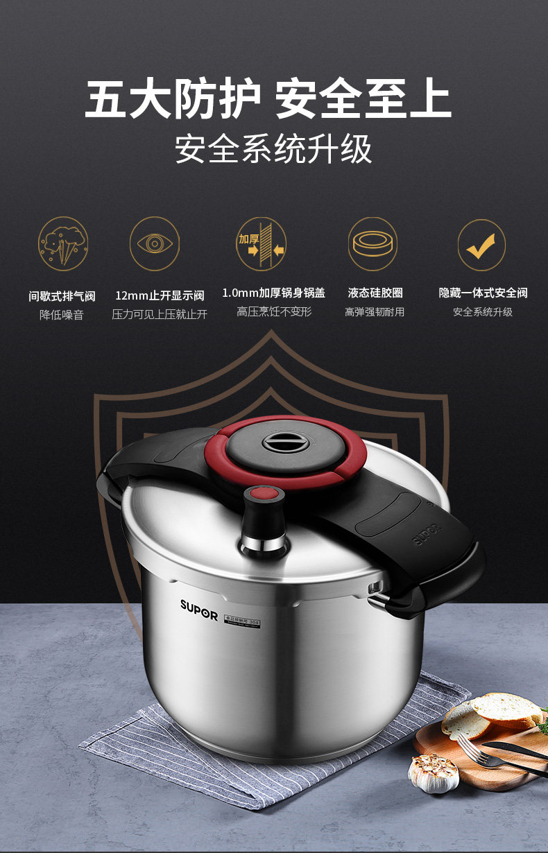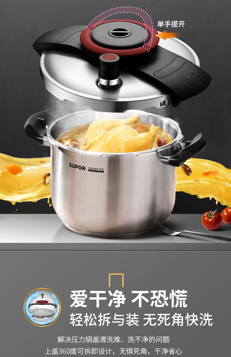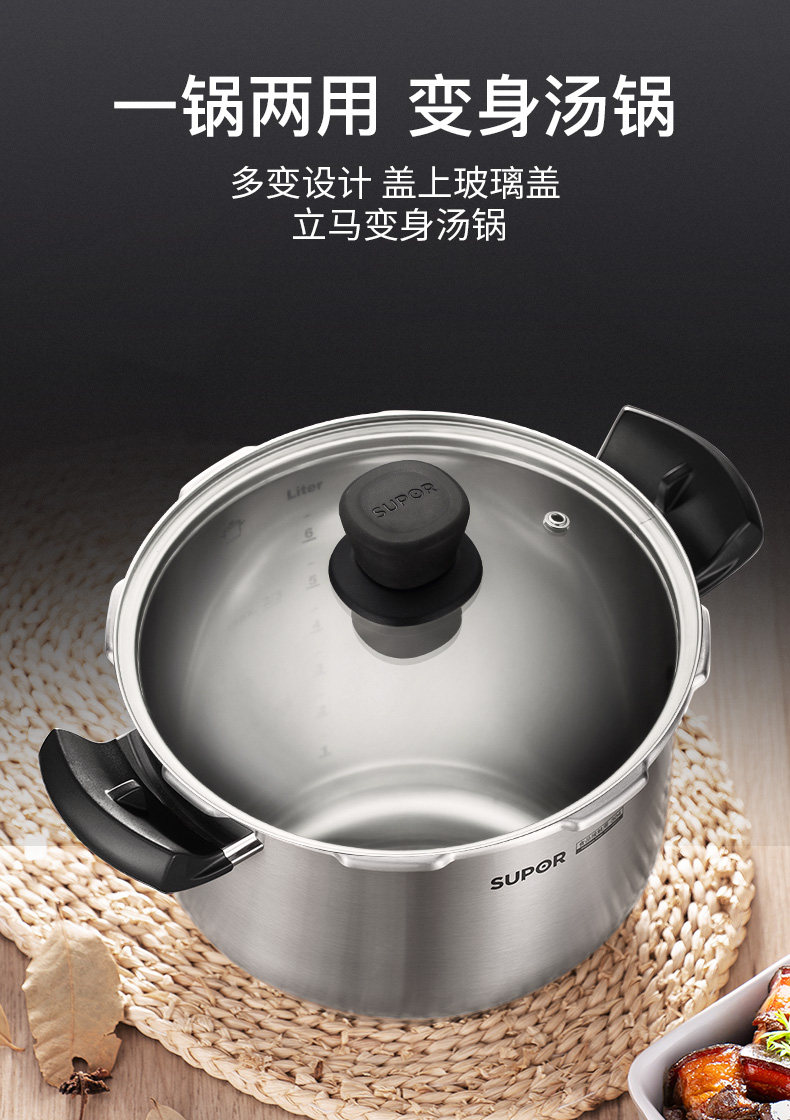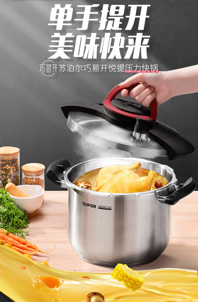 Supor Yue увеличивает скороварку Home 304 Индукционная плита из нержавеющей стали Универсальная крупная скороварка