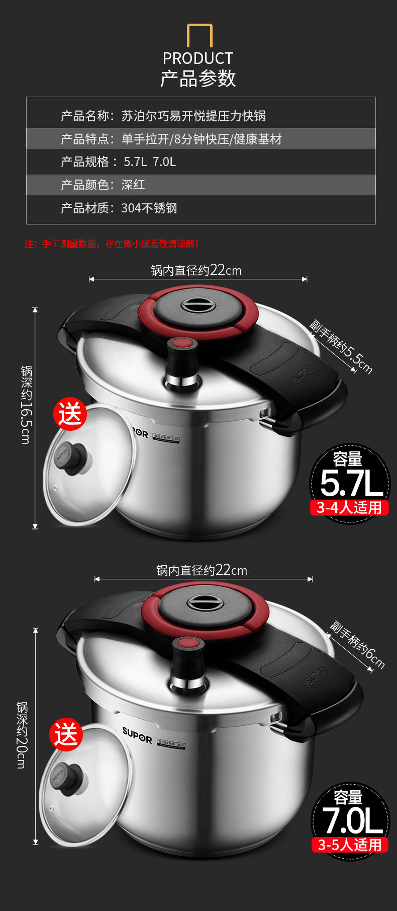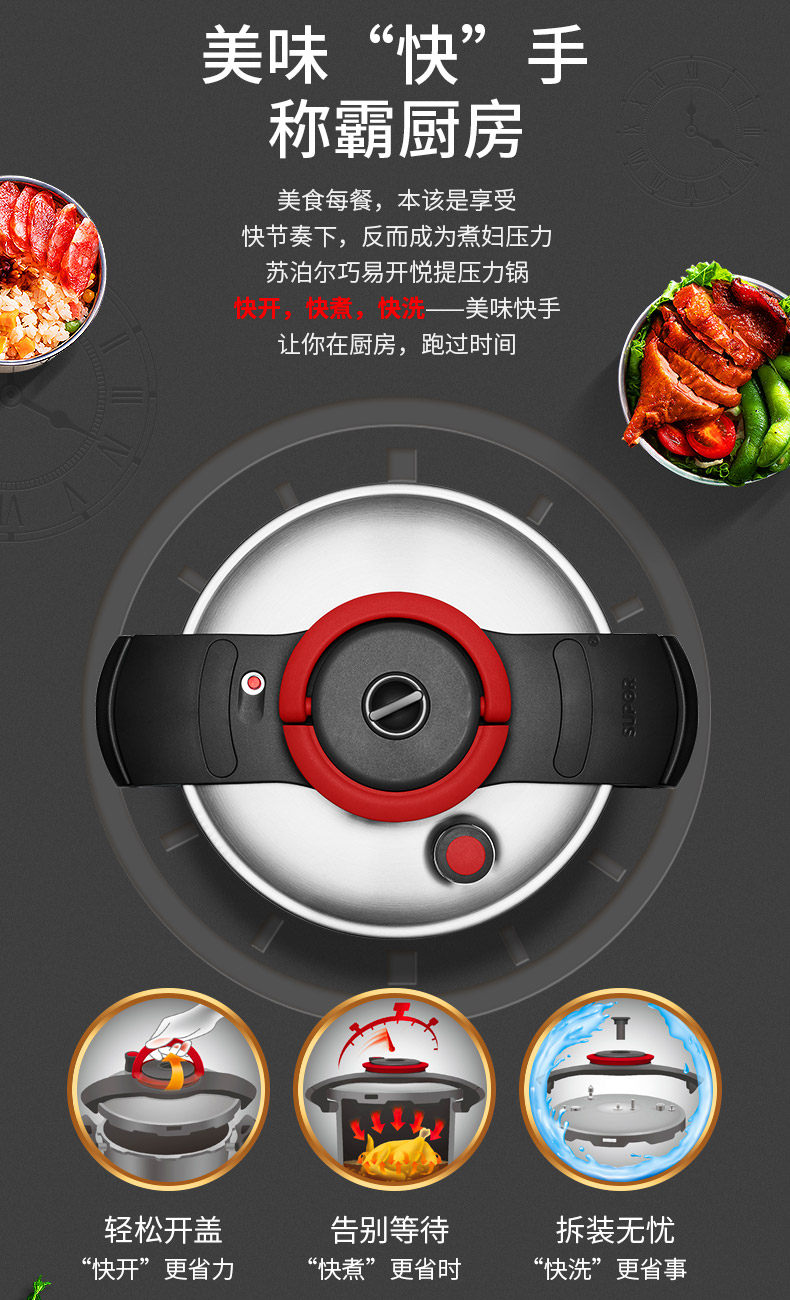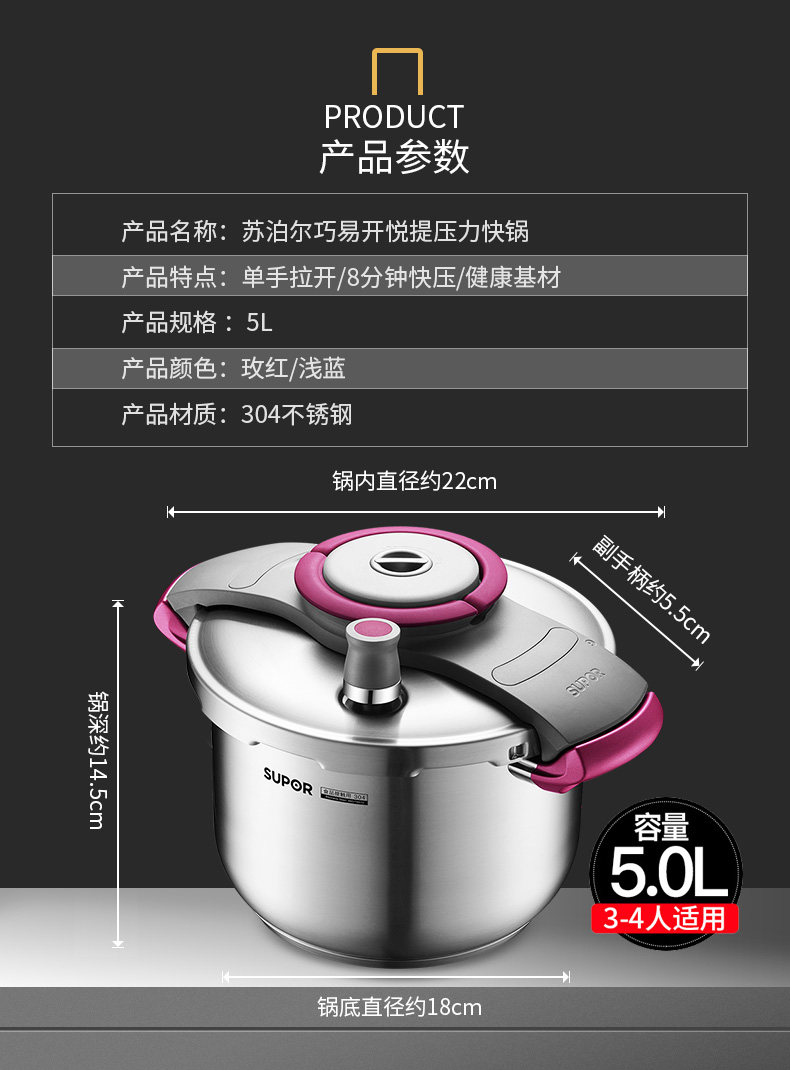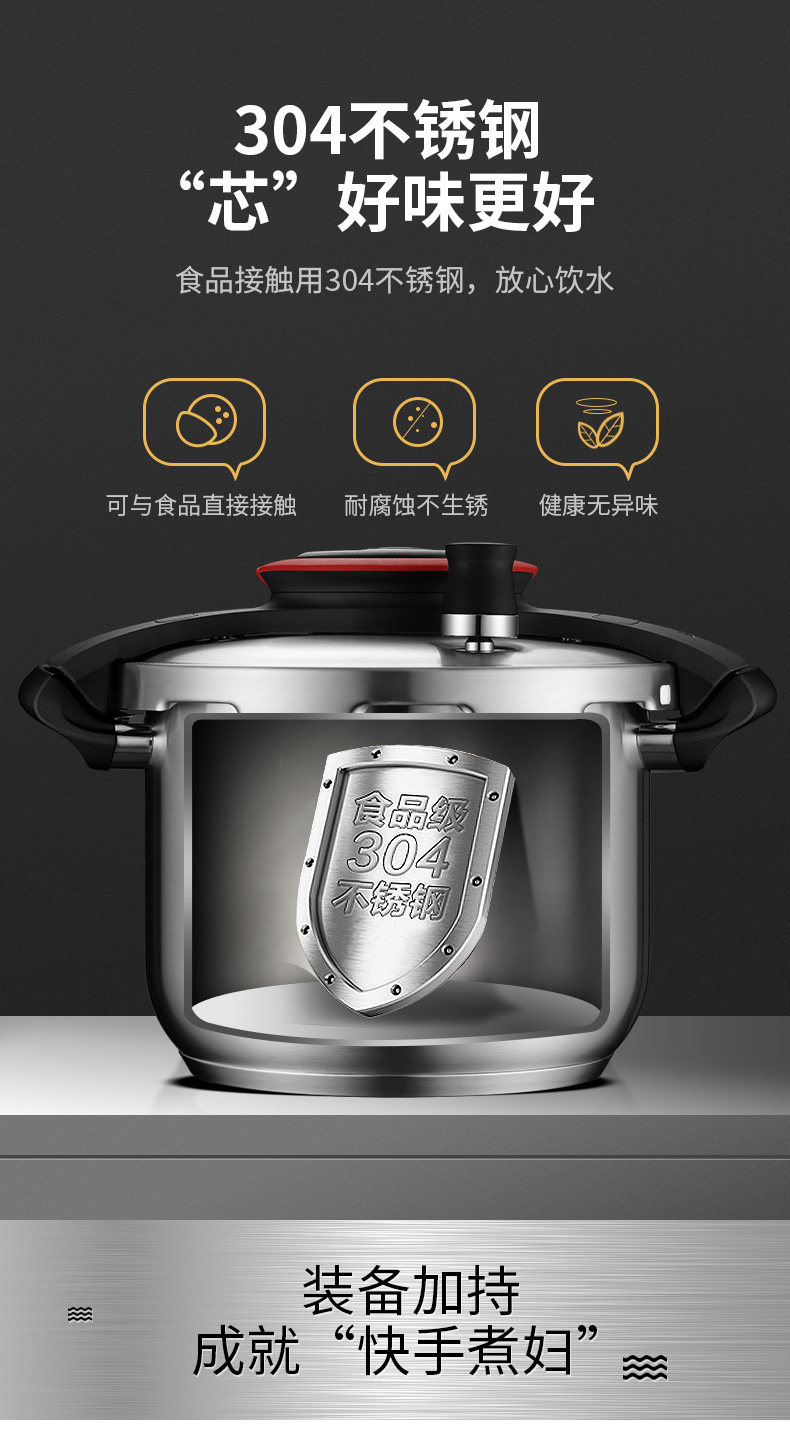 Supor Yue увеличивает скороварку Home 304 Индукционная плита из нержавеющей стали Универсальная крупная скороварка
