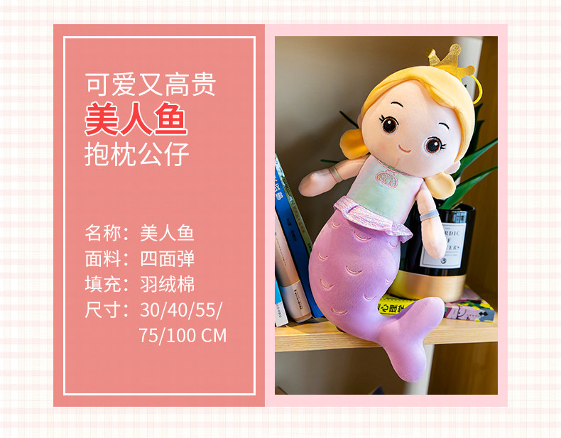 Милая подушка, успокаивающая тряпичная кукла, плюшевая игрушка, кроватка для сна, русалка
