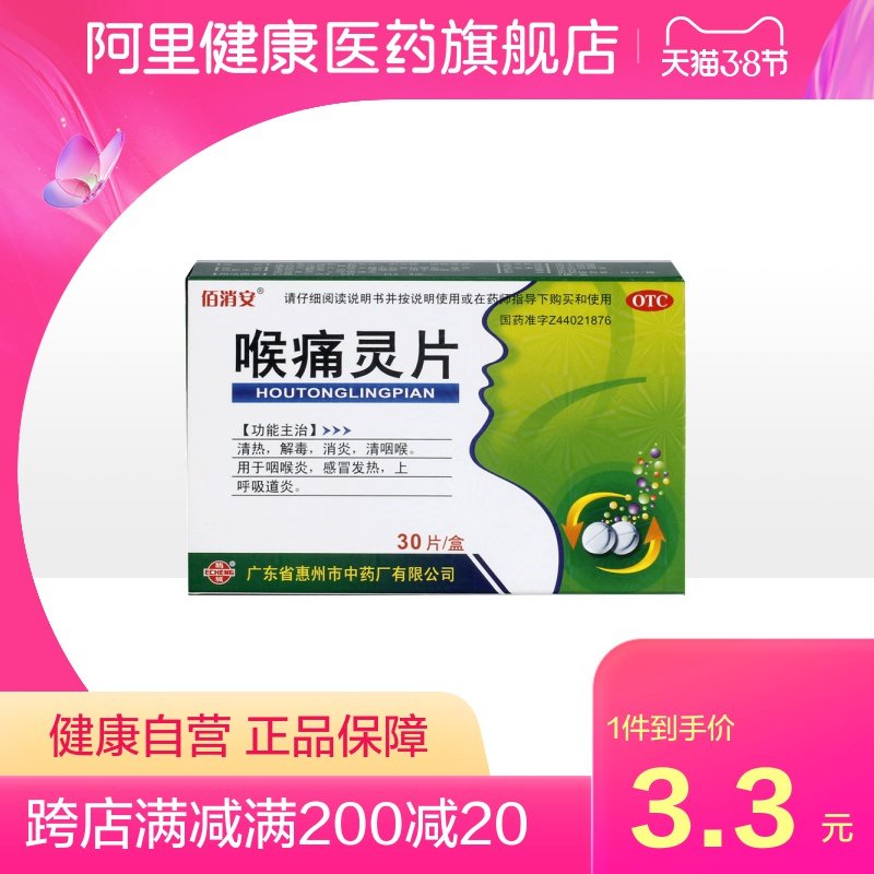 佰消安 Горло горло, духовные таблицы 30 таблеток/коробка холода, лихорадки, воспаление горла, инфекция дыхательных путей и анти -инфляционное воспаление