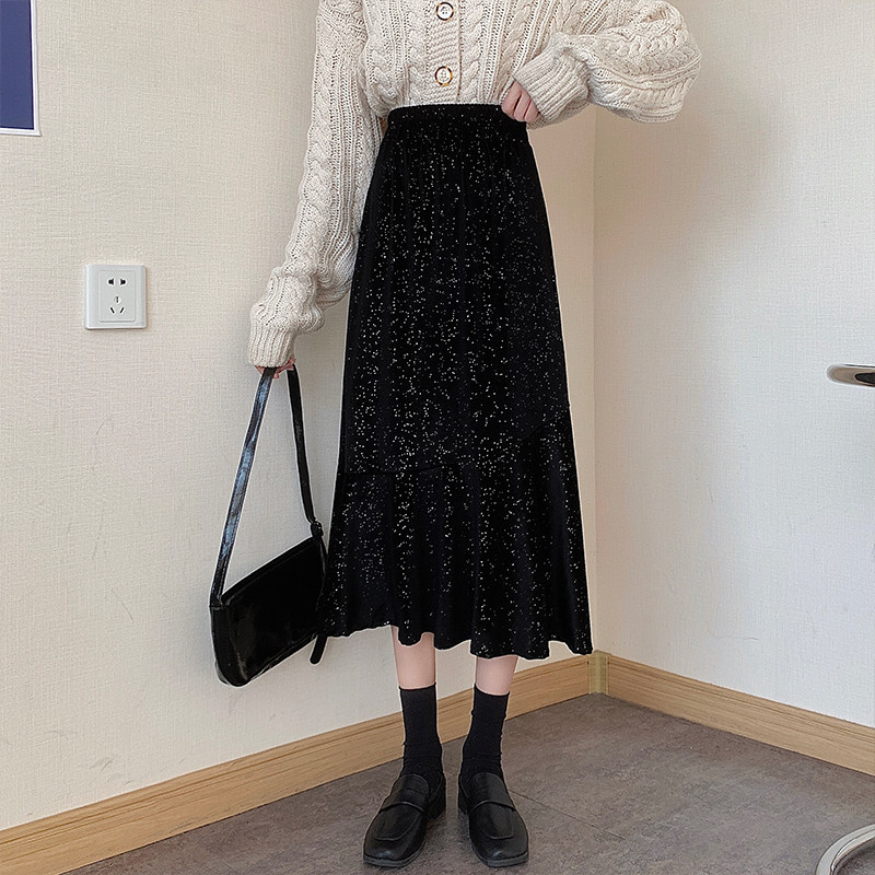 Весенняя ретро приталенная длинная бархатная юбка, большой размер, коллекция 2021, А-силуэт, высокая талия, средней длины