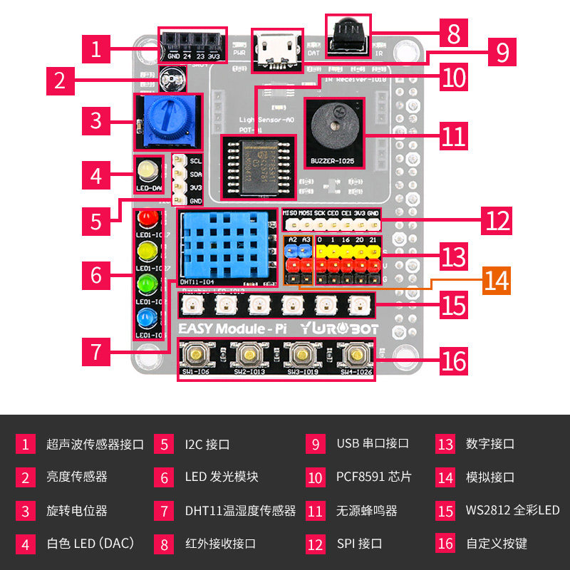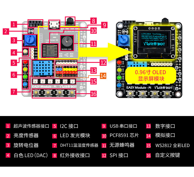 [Ywrobot] Подходит для Raspberry Pi 4b Multi -Function Extension OLED -модуль DHT11