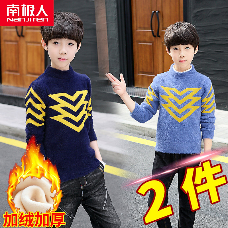 Утепленный свитер для мальчиков, белое бархатное удерживающее тепло термобелье, в западном стиле