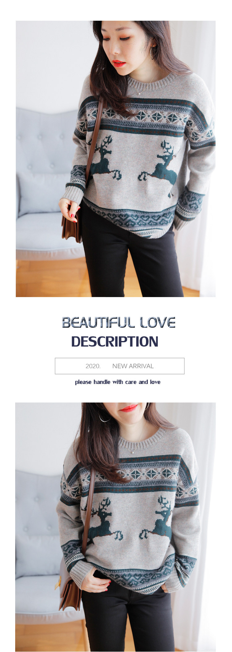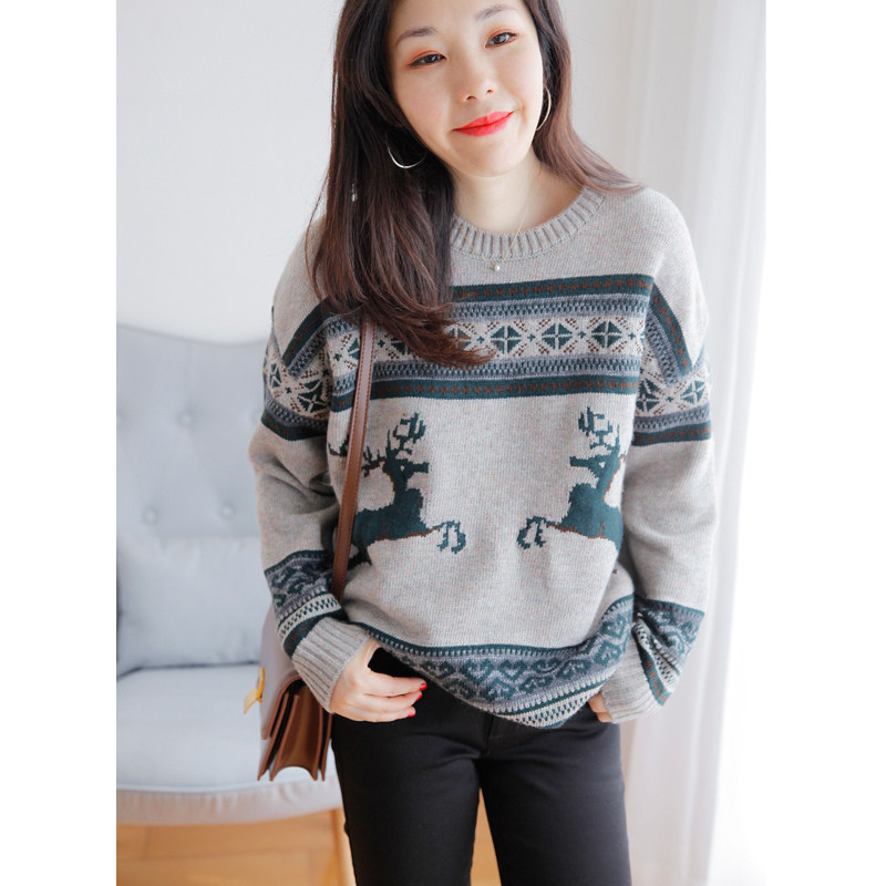 Качественный шерстяной трикотажный свитер, материал, принт