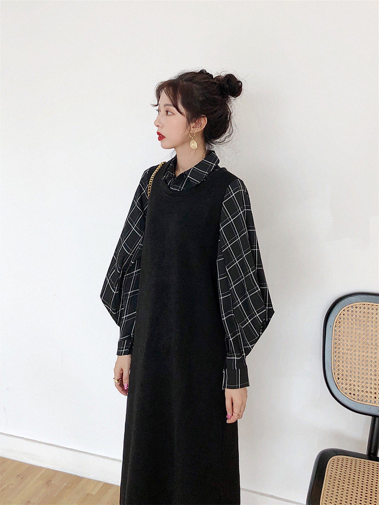 Трикотажный лонгслив, базовое платье, демисезонная длинная юбка, подходит для подростков, французский стиль, изысканный стиль
