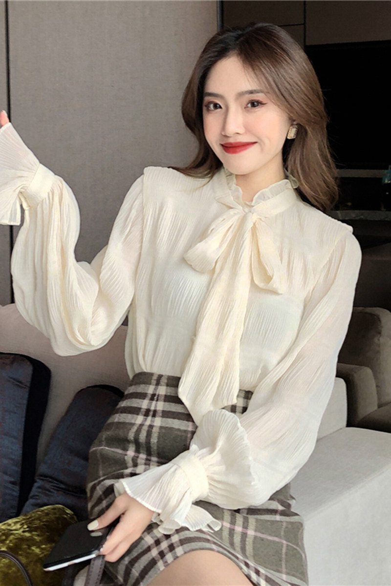 Шифоновый демисезонный мегафон с бантиком, рубашка, 2020, в корейском стиле