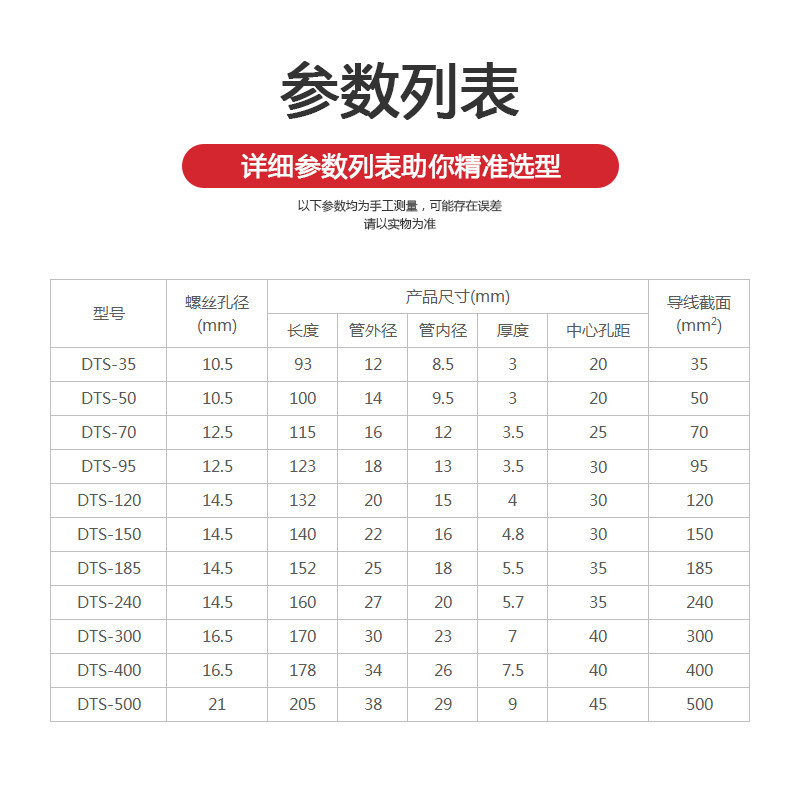 Олово -плановая двойная дыра медная нос DTS185/240/300/400/500 квадратный медный разъем Медь