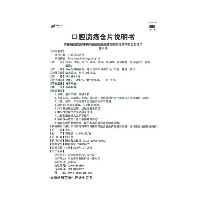 海欣 Язва рта содержит 0,8 г*12 таблеток/рецидив ящика пероральной язвы перора