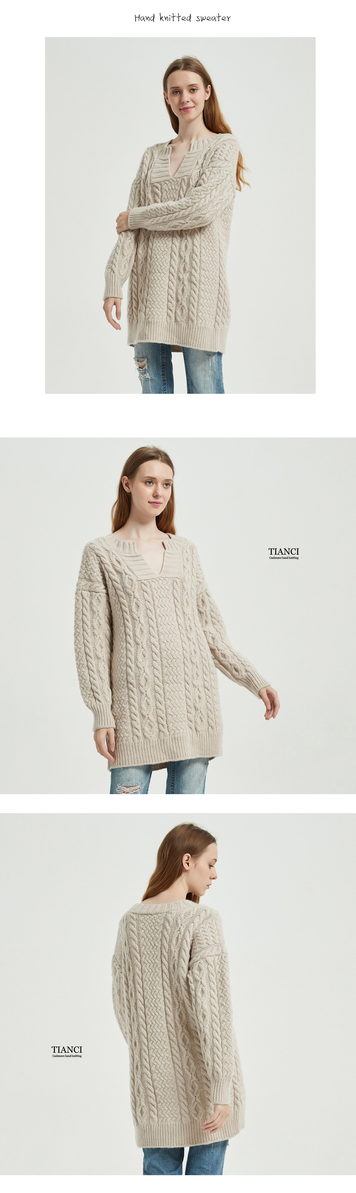 Экспортные заказы 100%белый кашемирная ручная игла ручной работы средней длиной v -neck толстый кардиганский зимний женский свитер