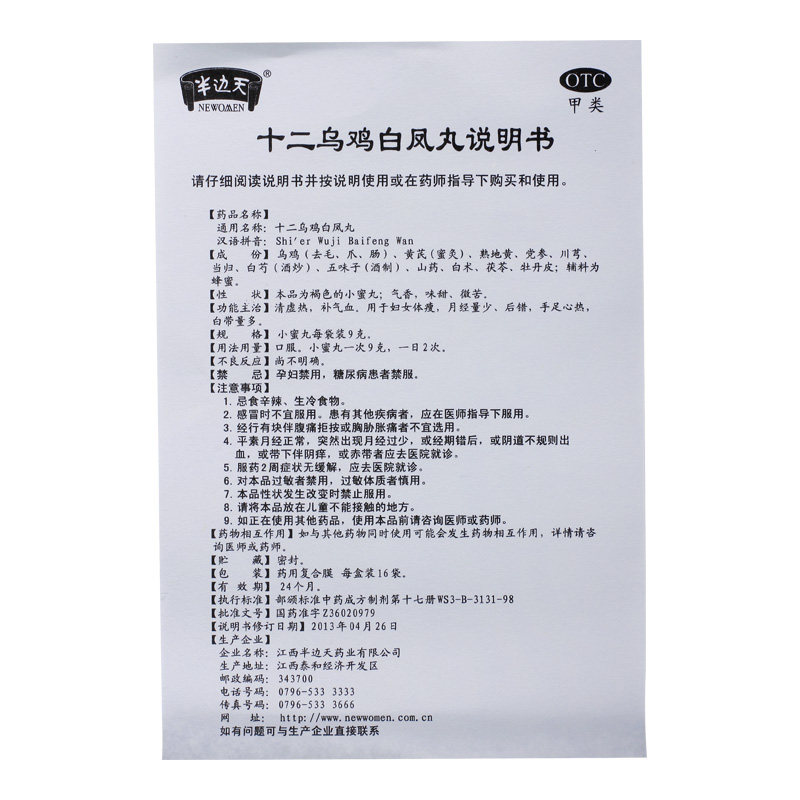 NEWOMEN/半边天 Двенадцать черных цыплят байфенг таблетки 9G*16 мешков/коробки менструальный объем и меньше ци и боль в гинекологии