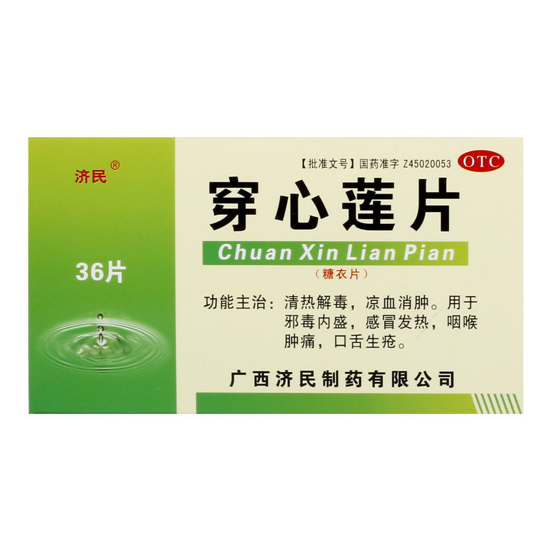 济民 Ношение сердечного лотоса таблетки 36 таблеток чистое огонь, детоксикация, холод, горло, горло, горло, боль в горле, рот, болит фарингит