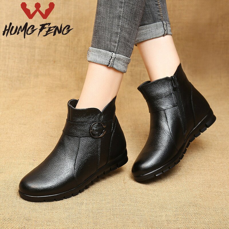 Martens, зимние флисовые удерживающие тепло ботинки для матери, туфли для кожаной обуви, обувь, мягкая подошва, для среднего возраста