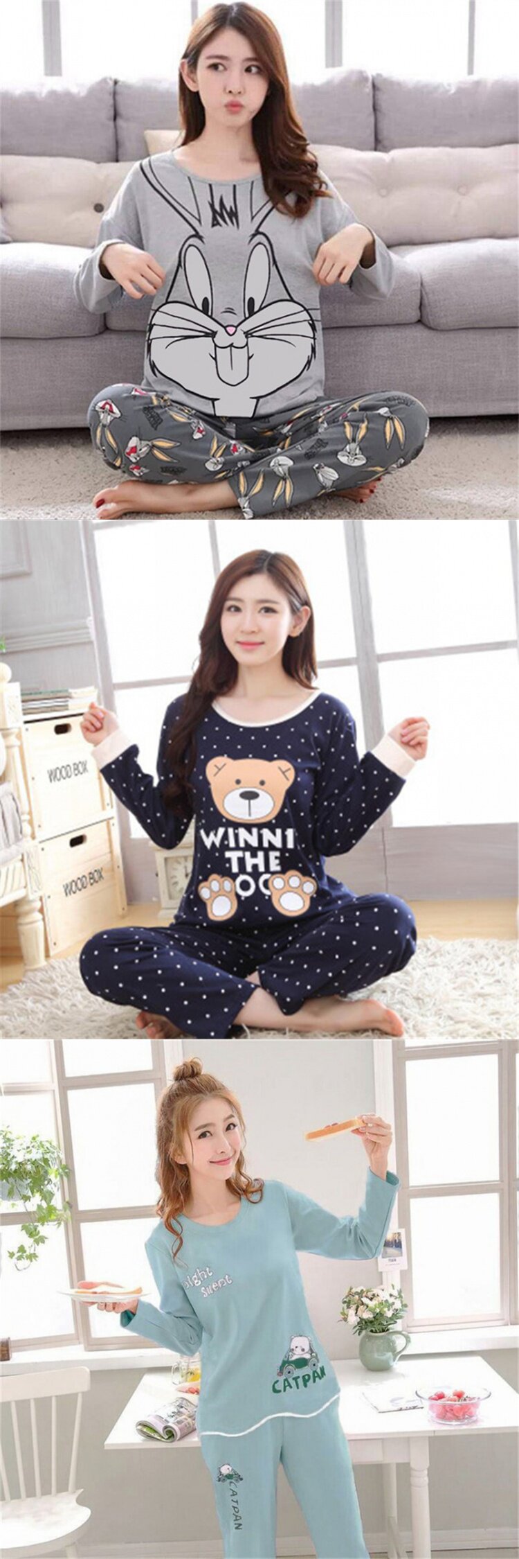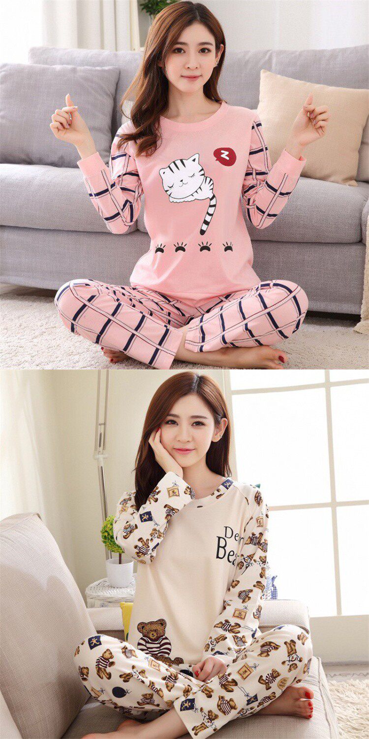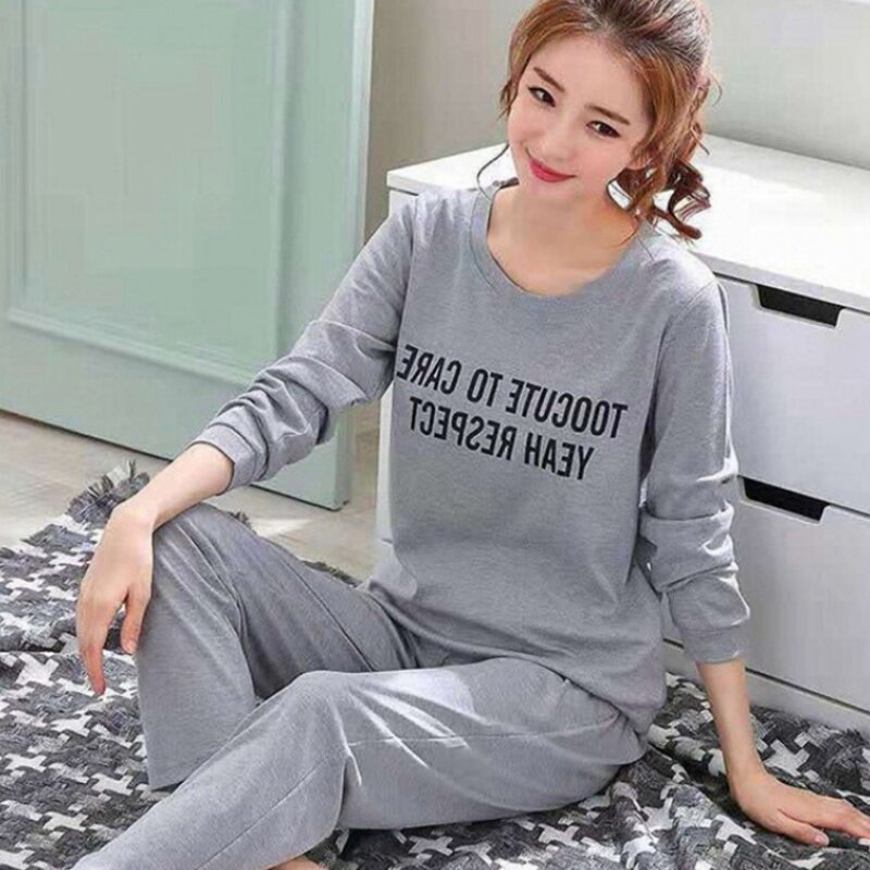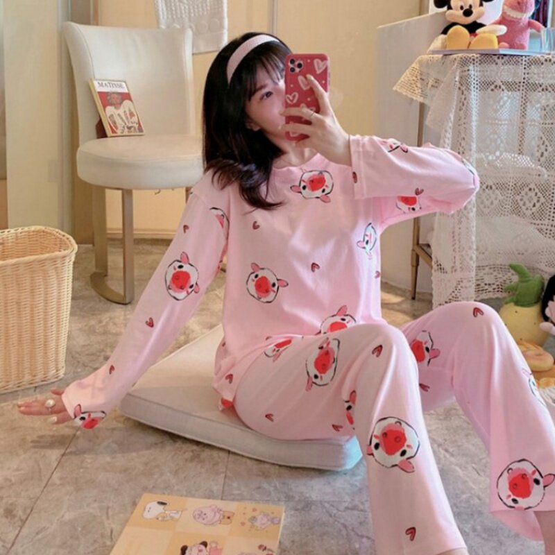 Осенняя демисезонная пижама, хлопковый зимний лонгслив, комплект, 2020 года, большой размер
