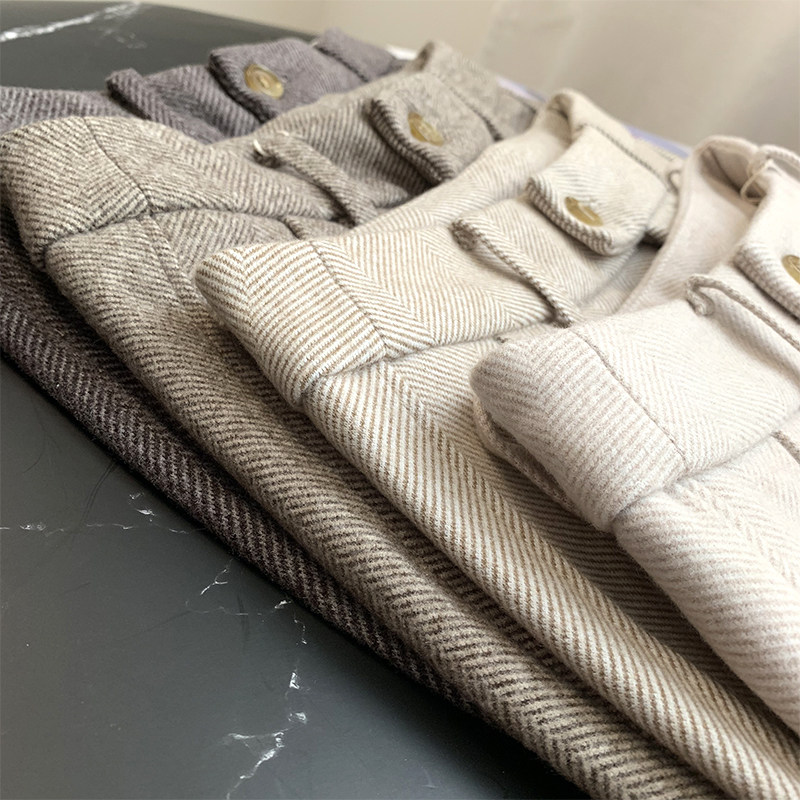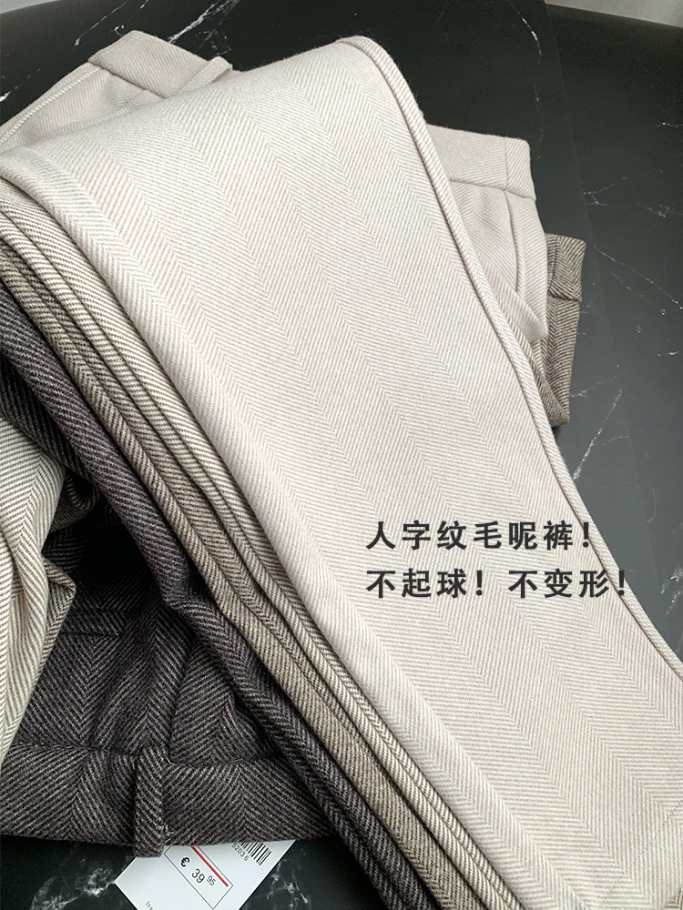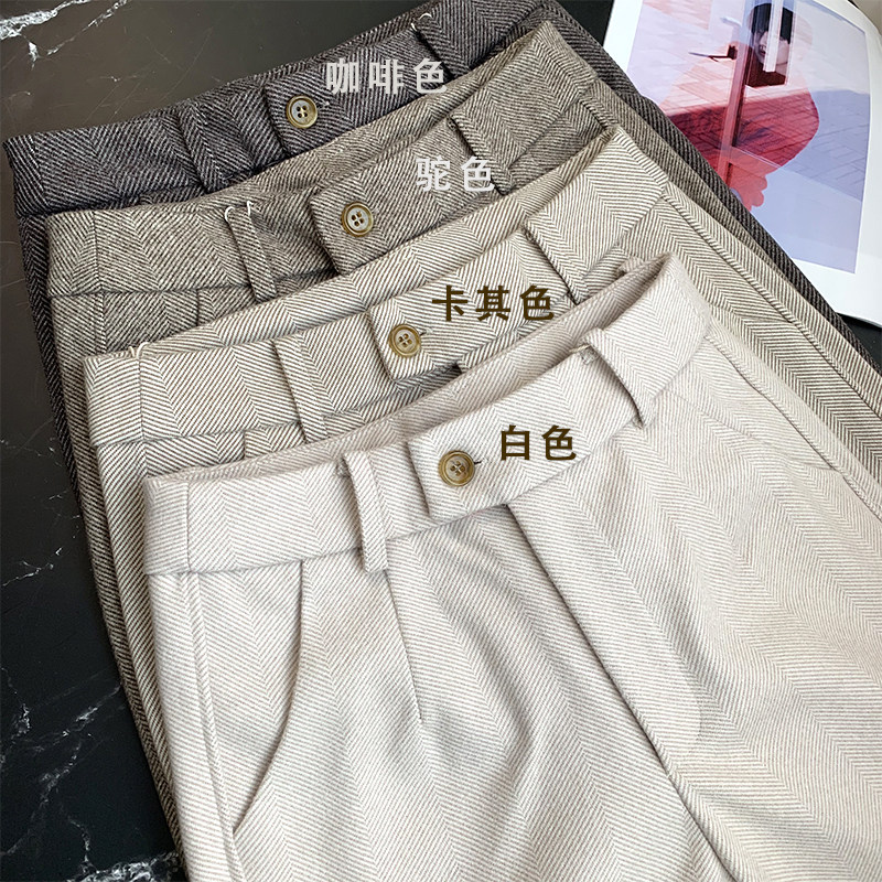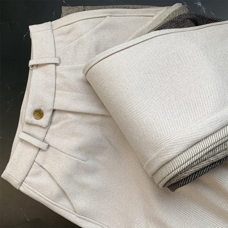 Демисезонные шерстяные зимние штаны, высокая талия, увеличенная толщина, свободный прямой крой