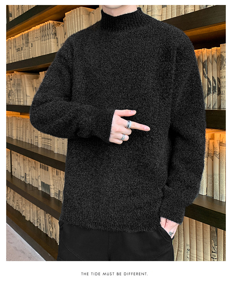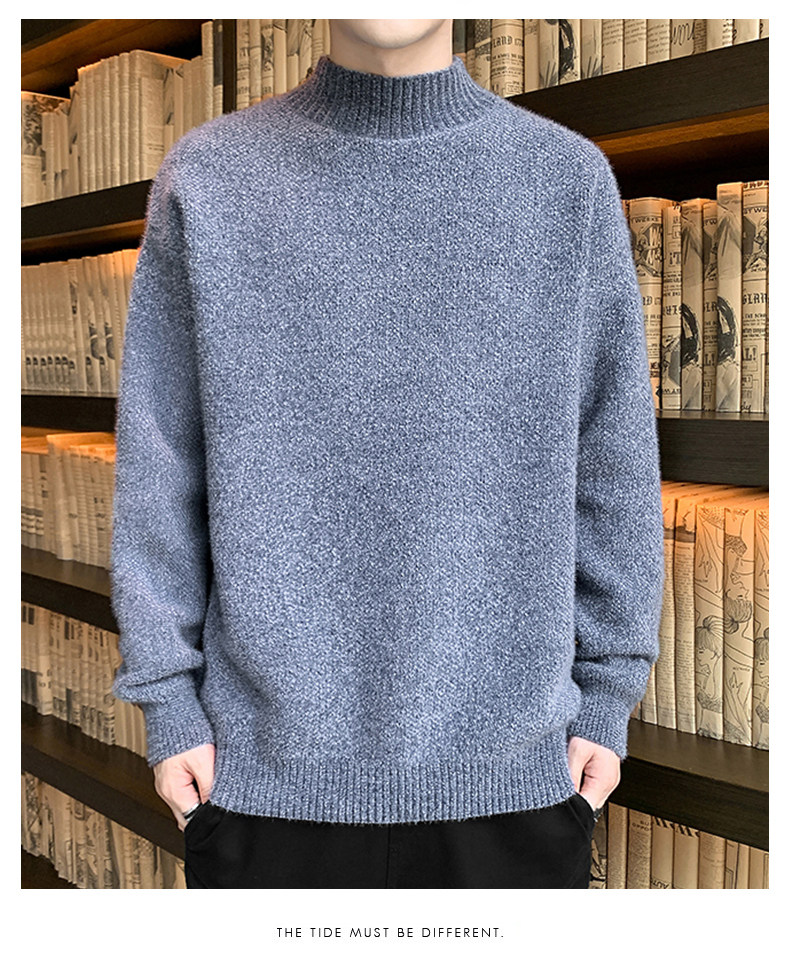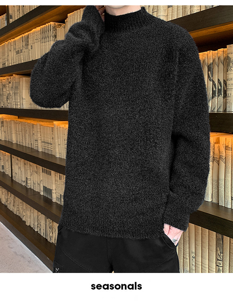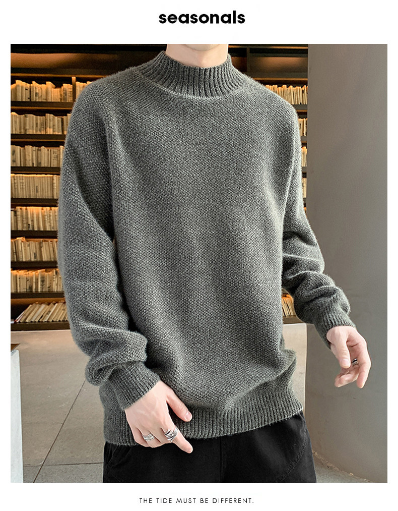 Демисезонный трендовый мужской брендовый утепленный удерживающий тепло свитер, высокий воротник, в корейском стиле, оверсайз