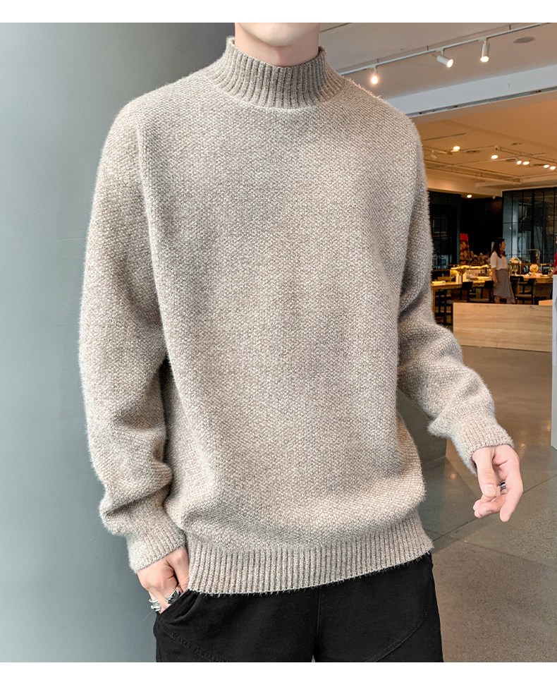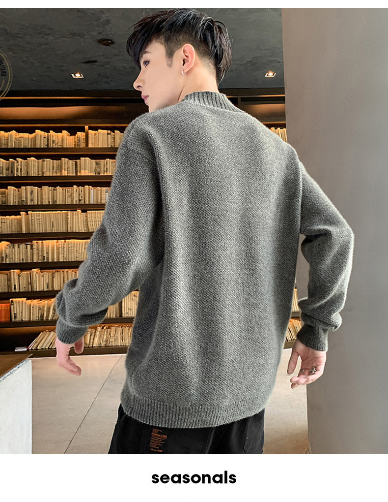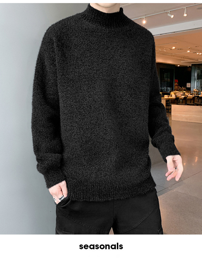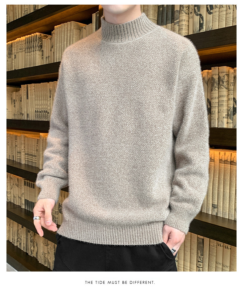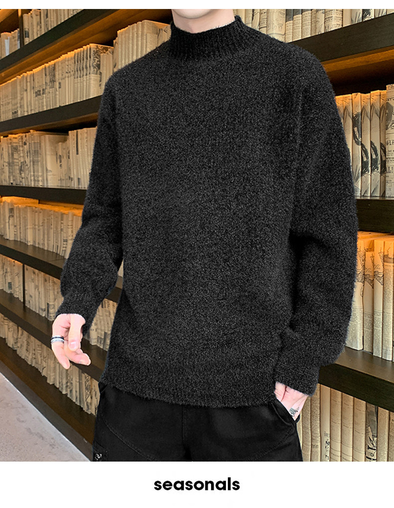 Демисезонный трендовый мужской брендовый утепленный удерживающий тепло свитер, высокий воротник, в корейском стиле, оверсайз