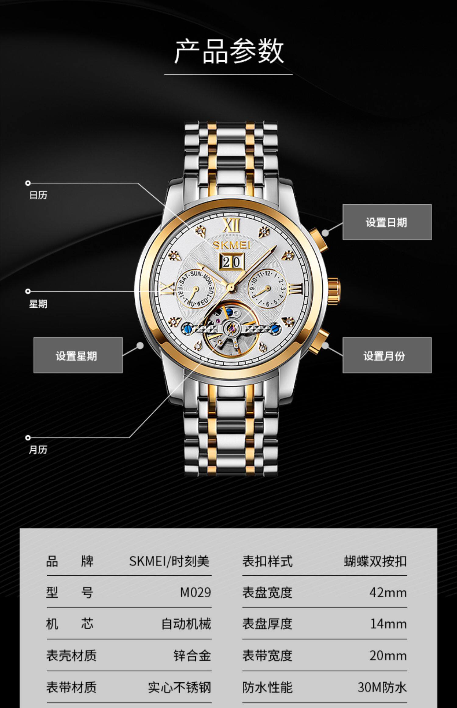 Модные мужские часы для взрослых, водонепроницаемый календарь, механические механические часы