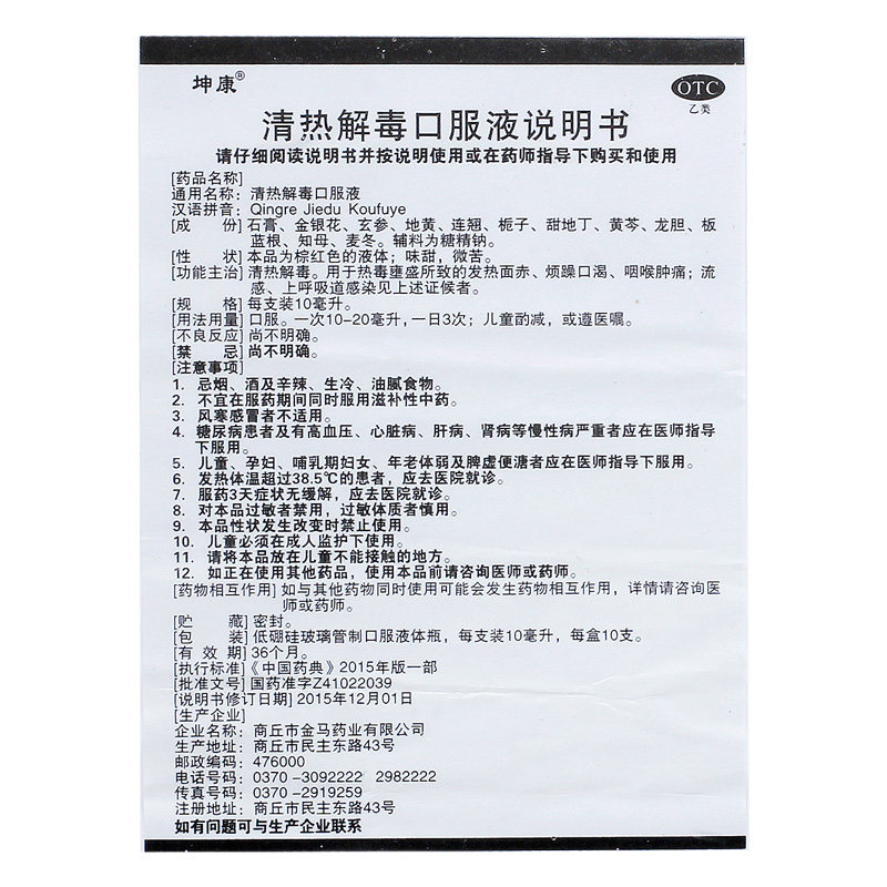 坤康 Прозрачное тепло и детоксикация пероральный раствор 10 мл*10 Поддержка/коробка