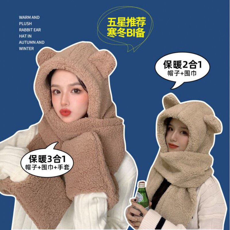 Демисезонная милая шапка, зимний бархатный универсальный удерживающий тепло шарф с капюшоном, предпродажа, в корейском стиле