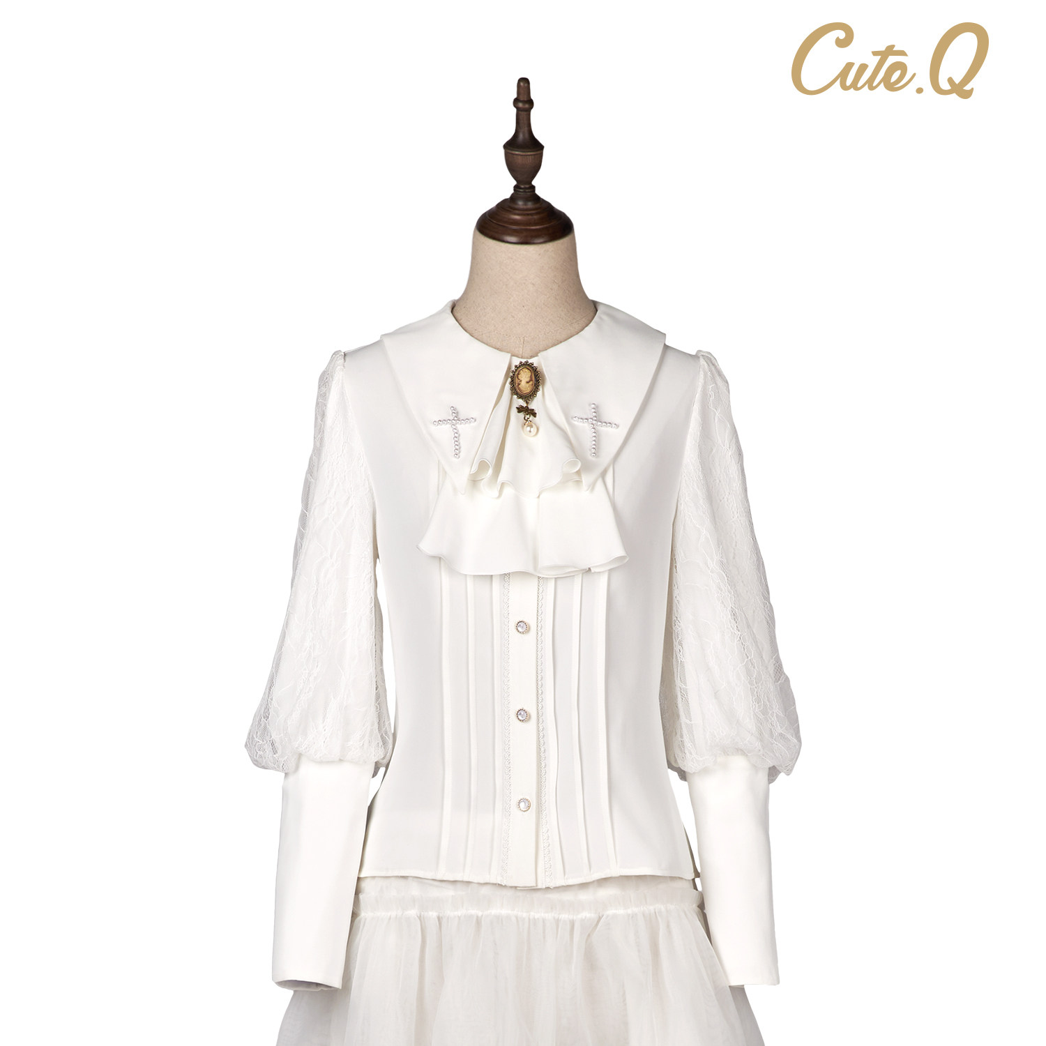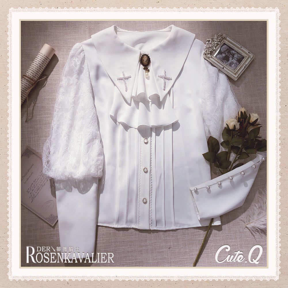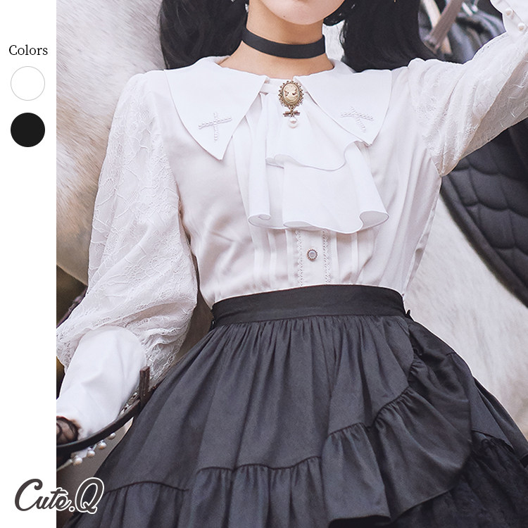 Рубашка, лонгслив, брошь, (в наличии на складе), стиль Лолита