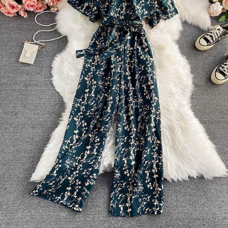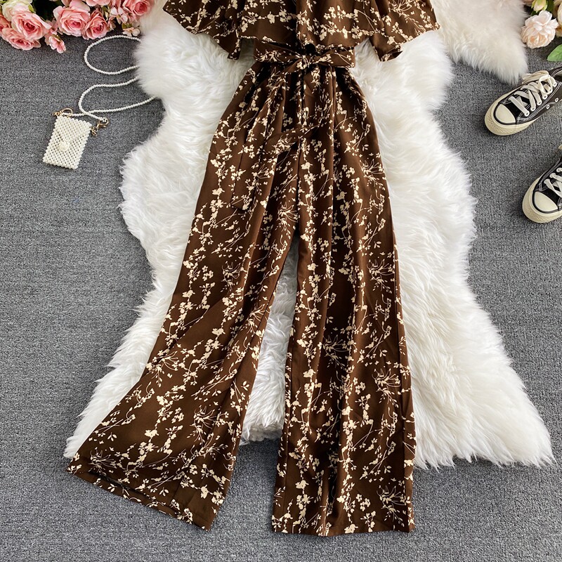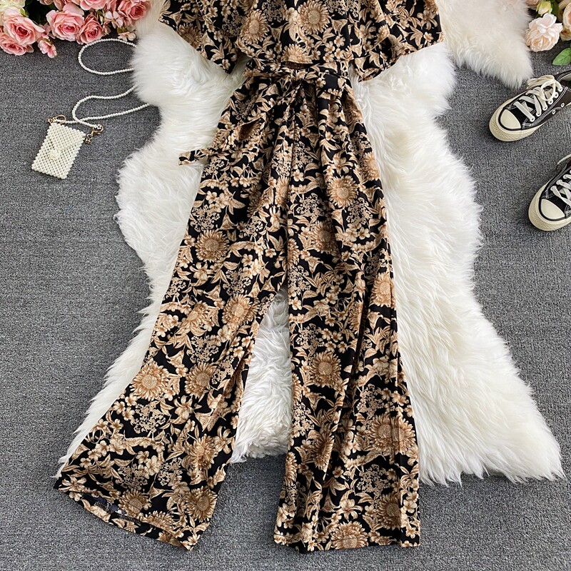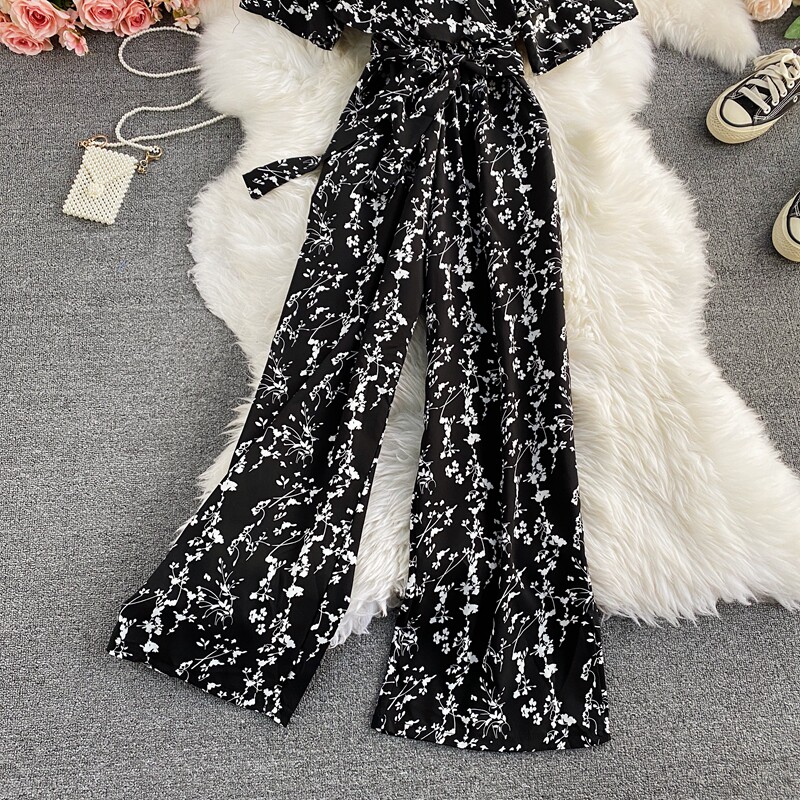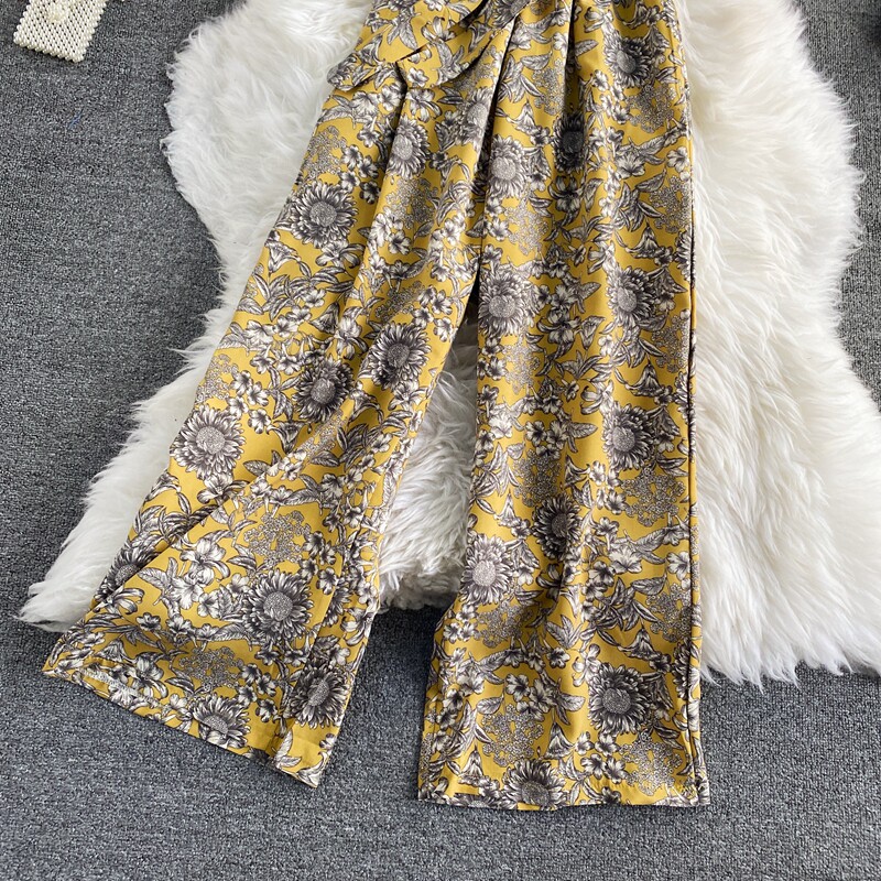 Штаны, летние колготки, комбинезон, приталенный корсет, цветочный принт, высокая талия, короткий рукав