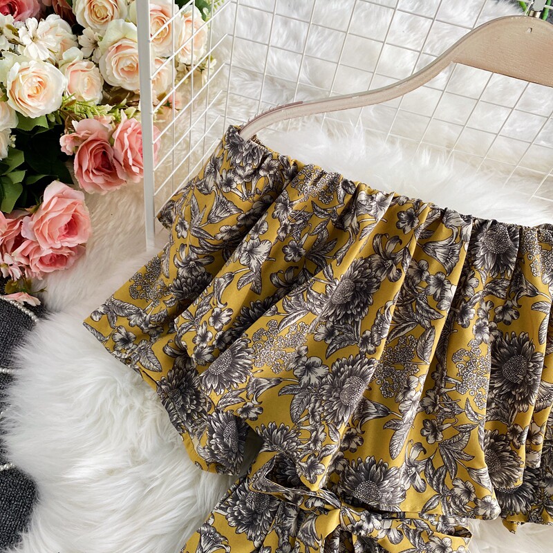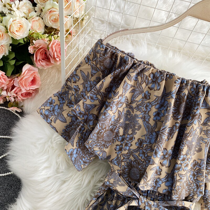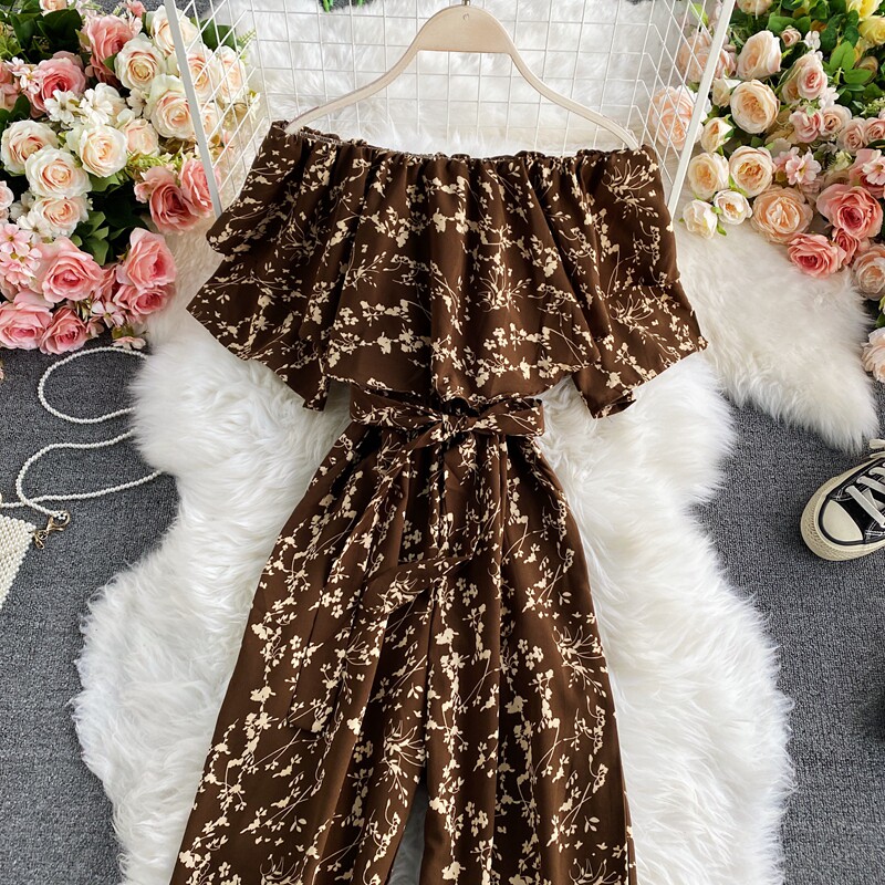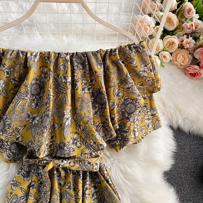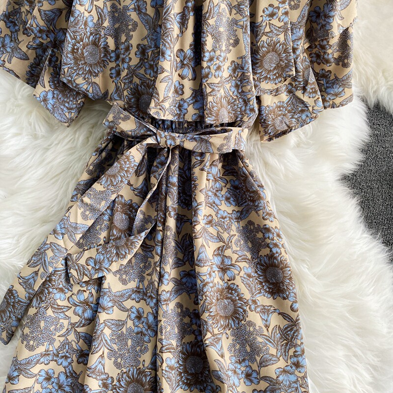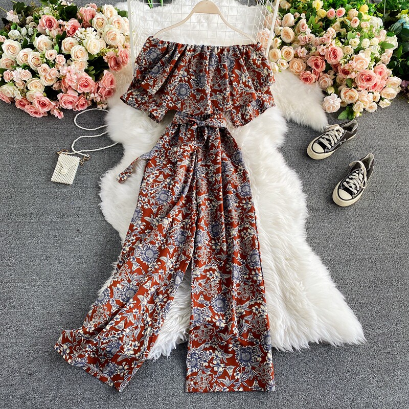 Штаны, летние колготки, комбинезон, приталенный корсет, цветочный принт, высокая талия, короткий рукав