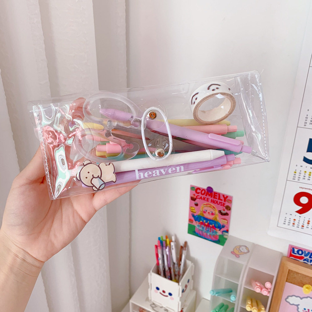 Брендовый лайнер, пенал из ПВХ, прозрачная портативная косметическая сумка для хранения для школьников и студентов, универсальный карандаш, в корейском стиле