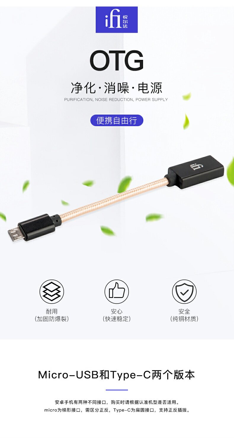 Ifi Yueer France Micousb Typec Mobile Phone Special OTG USB Cable Cable xdsd Hip DAC XCAN Nano IDSD BL Декодирование отопального подключения Kioscopic Audio Cable