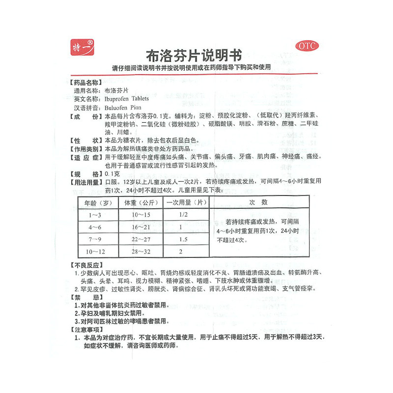 特一 Таблетки ибупрофена 0,1 г*100 таблеток/эпидемия бутылок. Холодная мигрень боль проходит через боль в мышечной боли зуба и боль