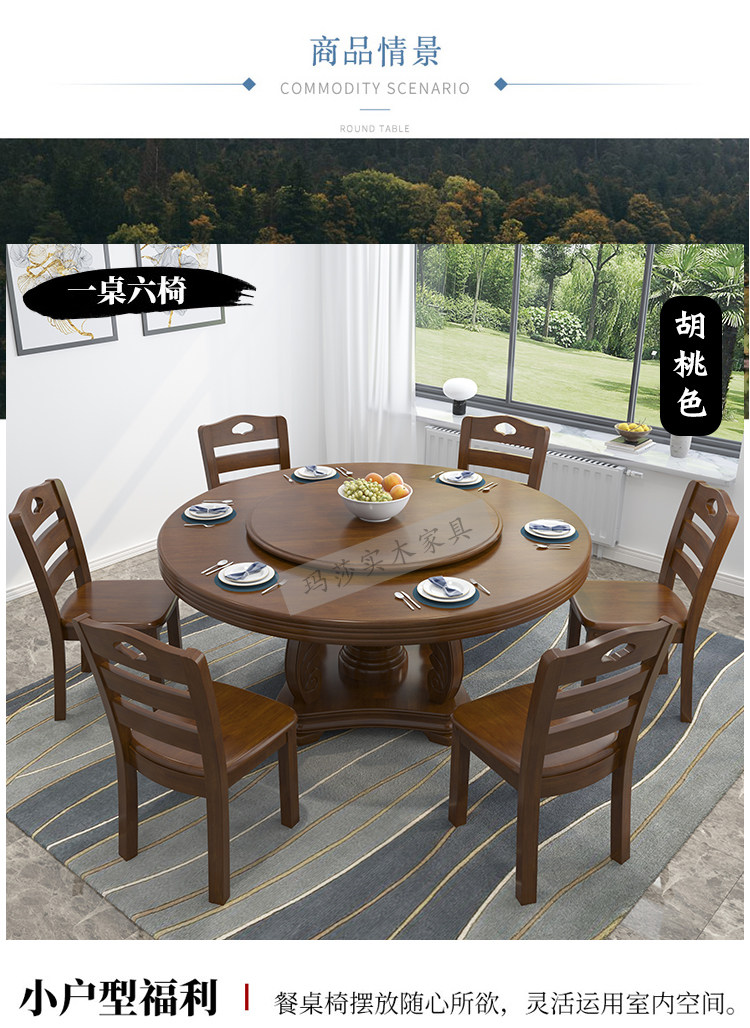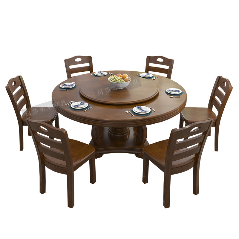 Столовый стол с твердым древесиной, домохожительный еду круглый обеденный стол и сочетание кресла.