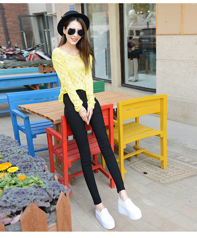 Осенние черные цветные тонкие леггинсы, штаны, карандаш, высокая талия, по фигуре