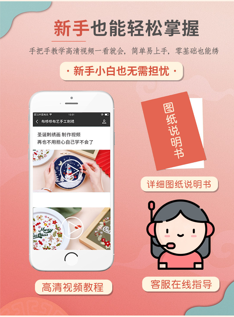 Набор материалов, DIY, с вышивкой, рождественский подарок, подарок на день рождения