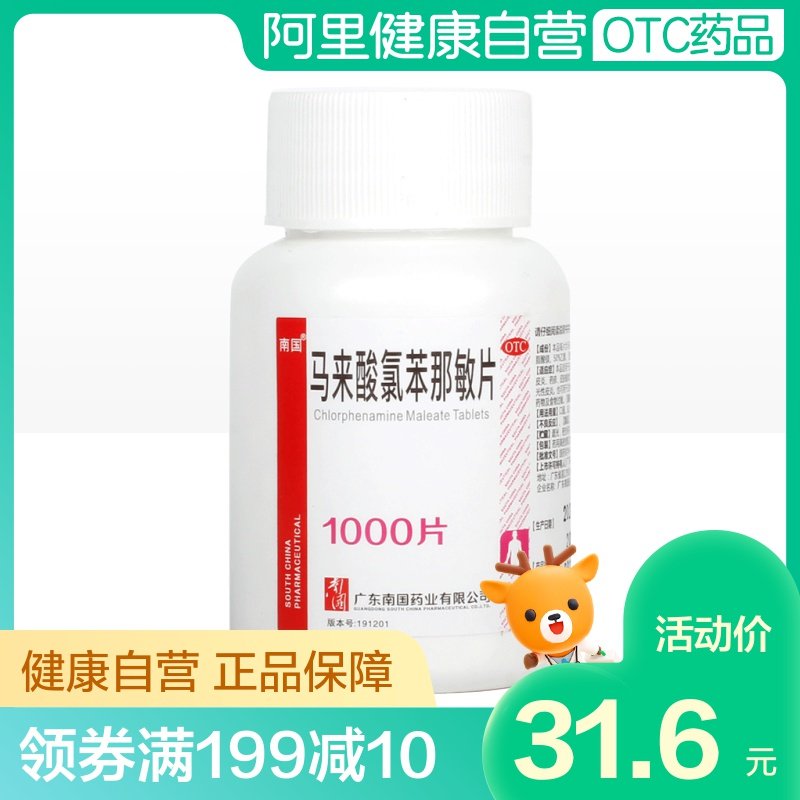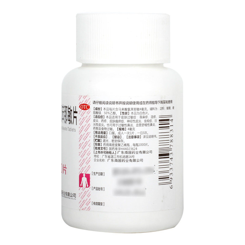 南国 Малайская кислота хлор фениамин таблетки 4 мг*1000 таблетки/бутылка экзема крапивница кома