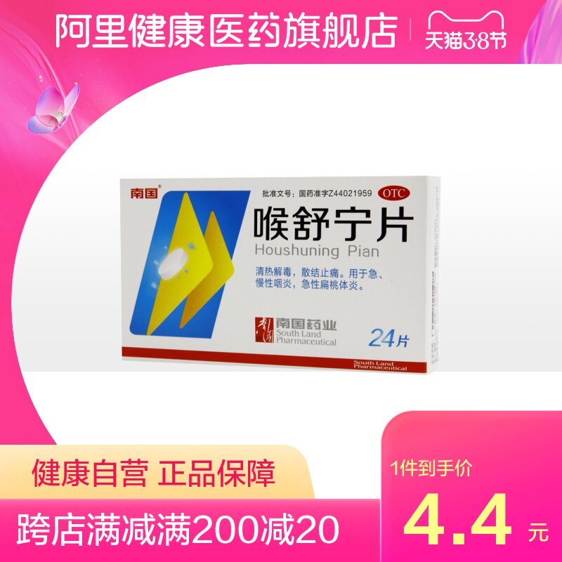 南国 Сияющие таблетки горла 24 таблетки/коробка Sanjie Оплата платежа чистый кашель Reybond, кашель, лосомот