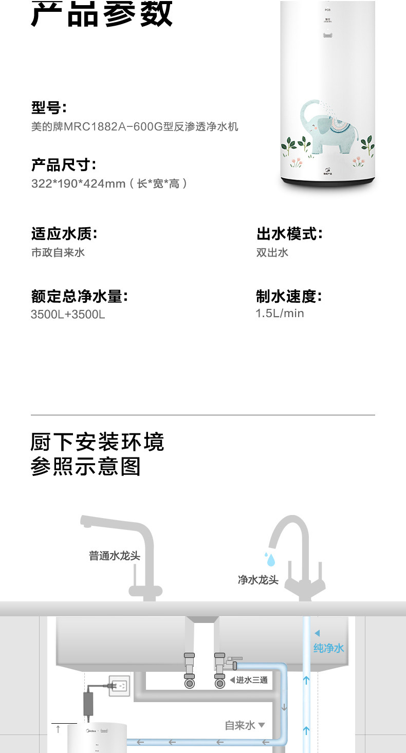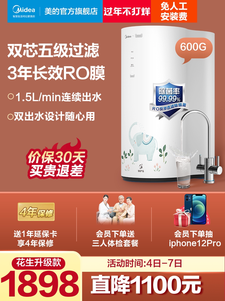 Умный дом Midea Устройство домохозяйства домохозяйственной питьевой вода Прямой питьевая вода Обратный осмос через официальное обновление арахиса фильтра