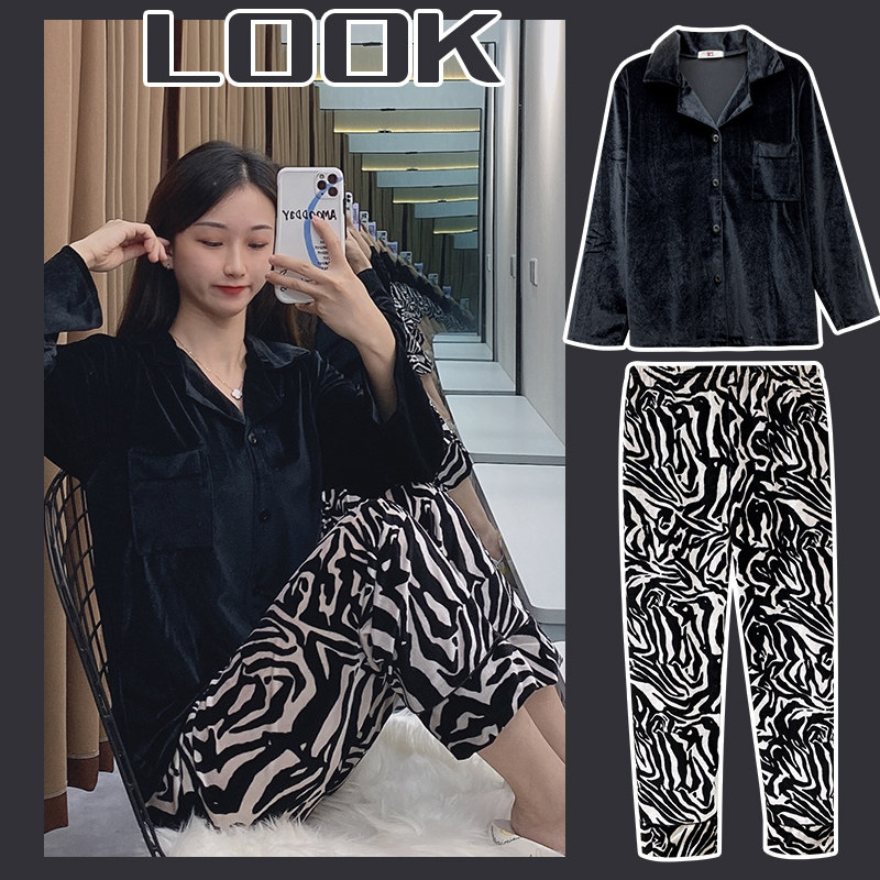 Tide, черная зебра, бархатная демисезонная пижама, бархатный лебедь, 2020, новая коллекция, популярно в интернете