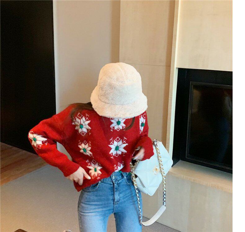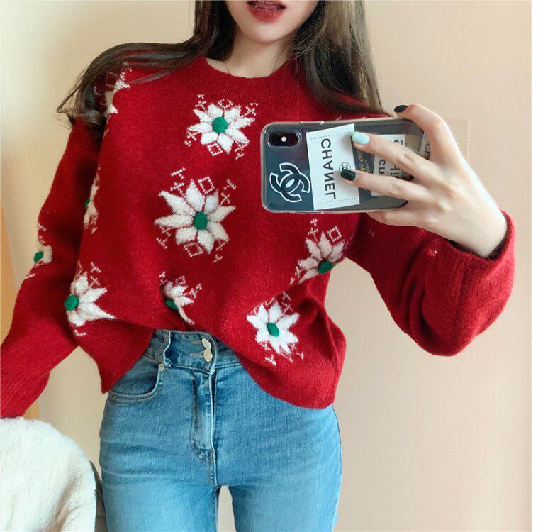 Красный рождественский трикотажный свитер с круглым воротником, утепленные шорты, коллекция 2021, подходит для подростков