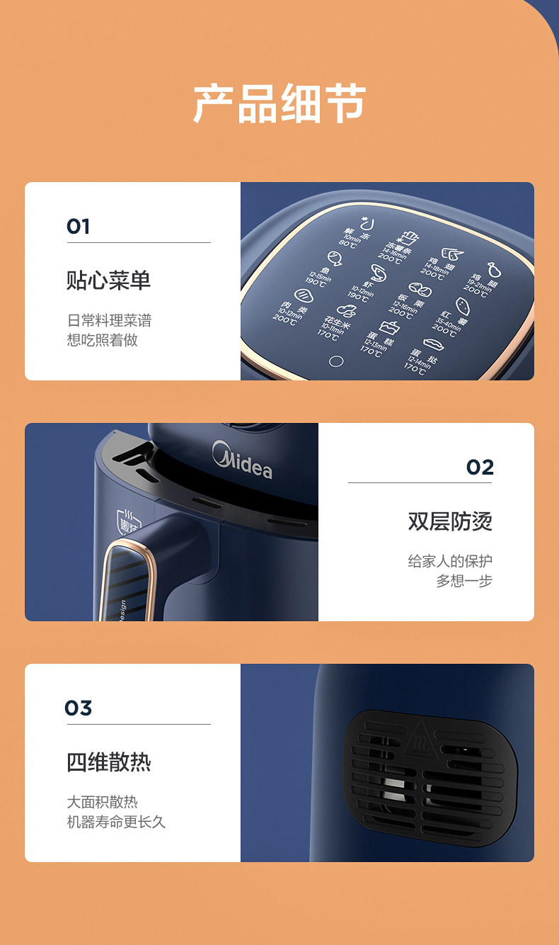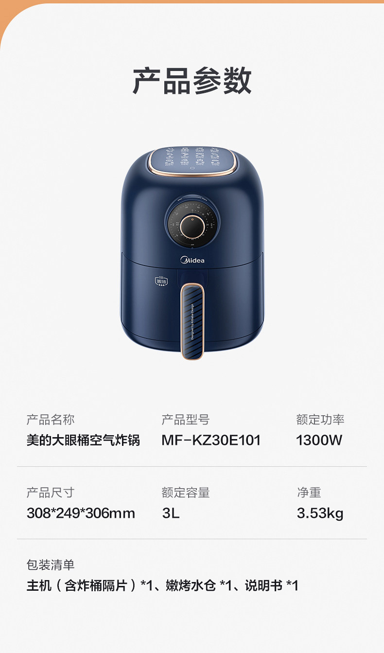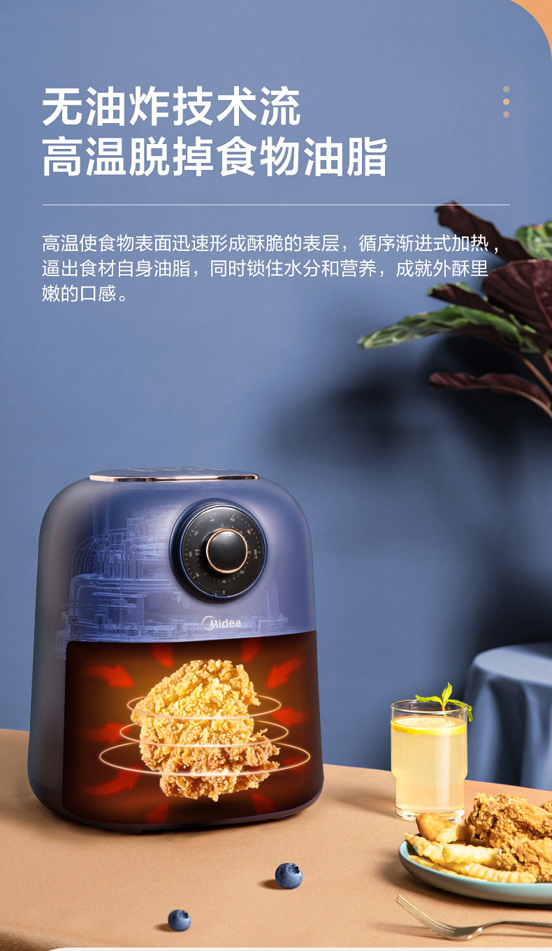 Midea Air Fried Pot Домохозяйство Новая крупная мощность интеллектуальная интеллектуальная автоматическая электрическая жареная жареная 3L Большая машина фри