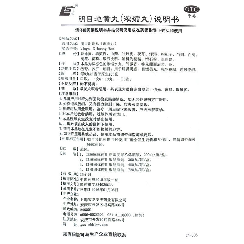上龙 Mingmu Dihuang Pill (концентрированная таблетка) 200 таблетки*1 бутылка/коробка, чтобы приветствовать слезы, слезы, питать печень и визуальные неясные