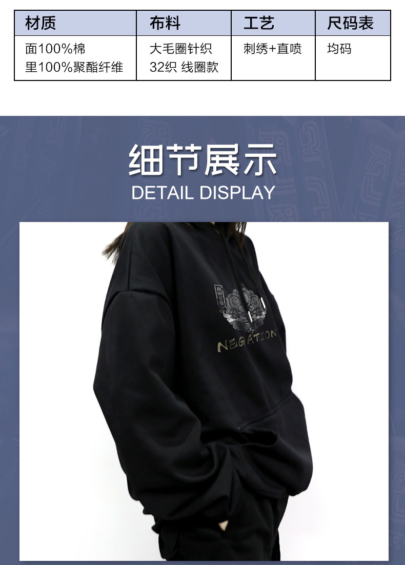 三国杀 Весенняя тонкая хлопковая спортивная толстовка с капюшоном с капюшоном, материал
