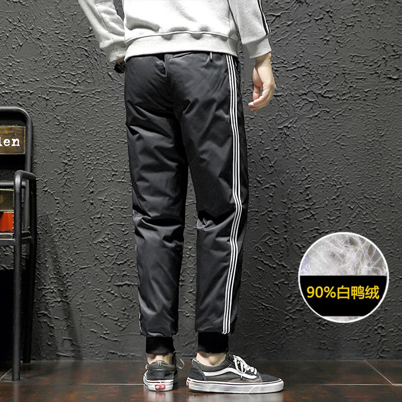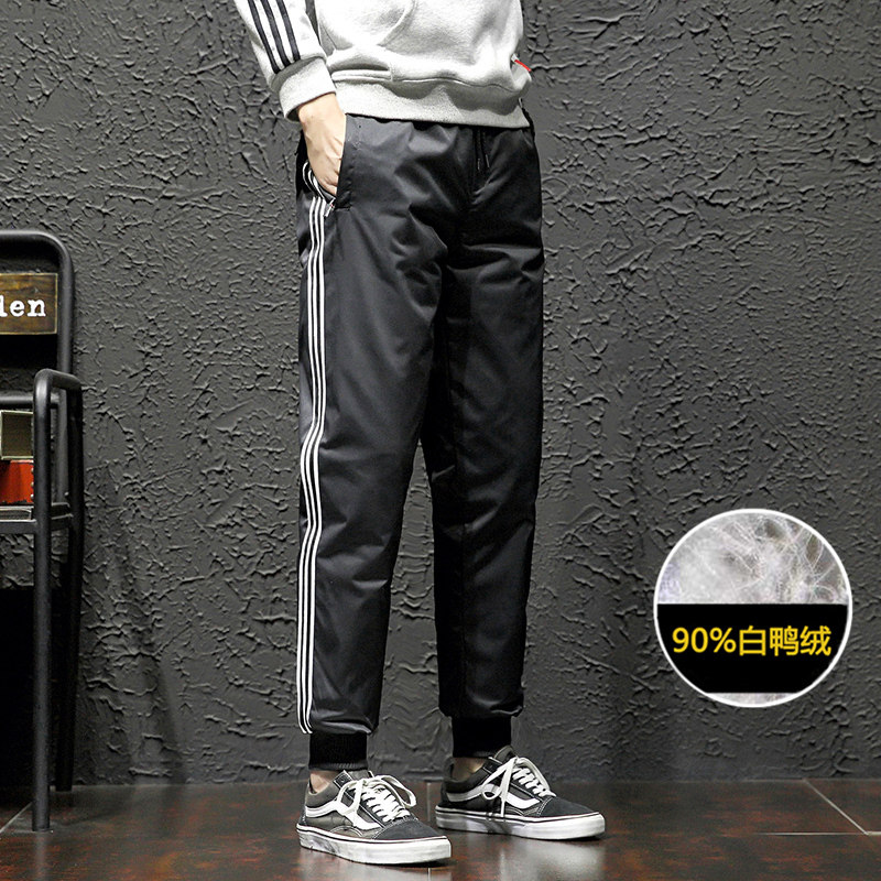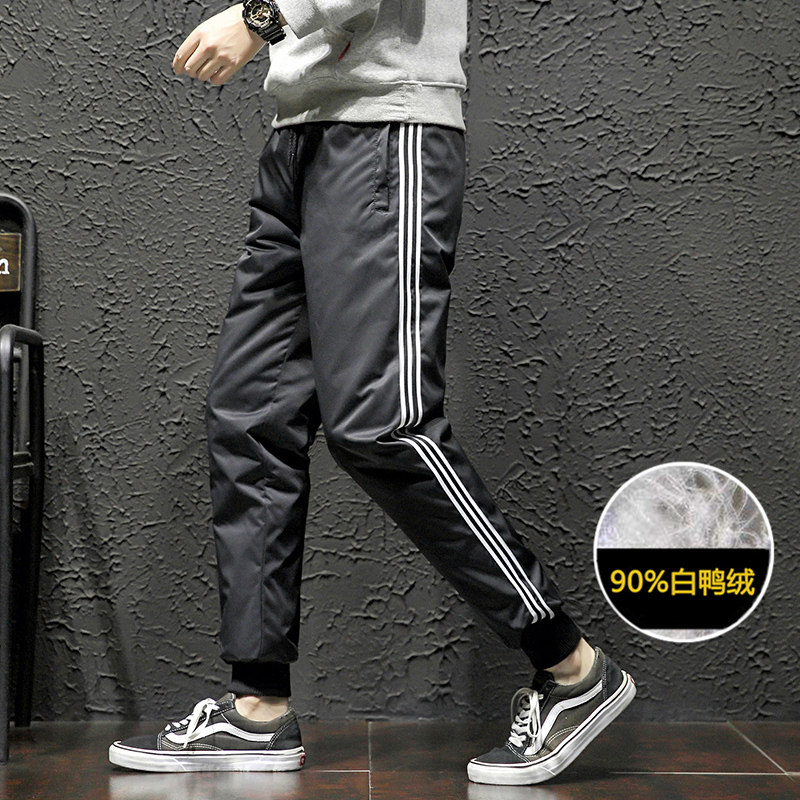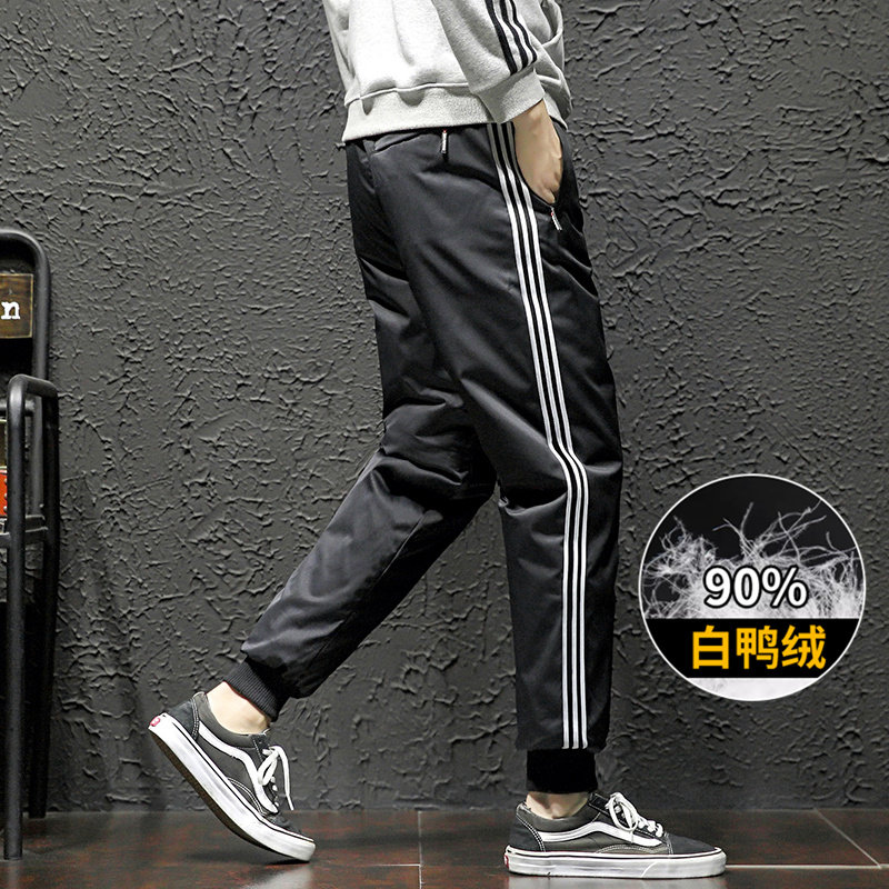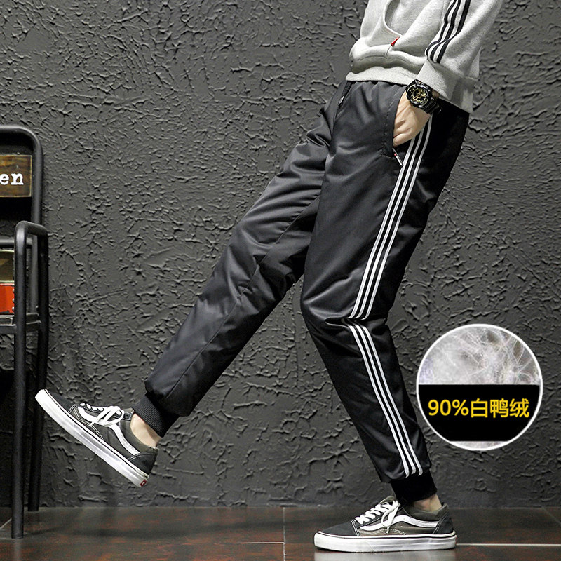 Зимние дорожные утепленные мужские легкие и тонкие спортивные бархатные штаны с пухом, утиный пух