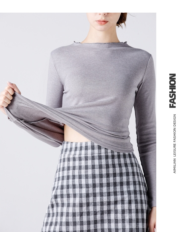 艾米恋 Базовый приятный телу осенний лонгслив, футболка, высокий воротник, 2021 года, с рукавом, в западном стиле