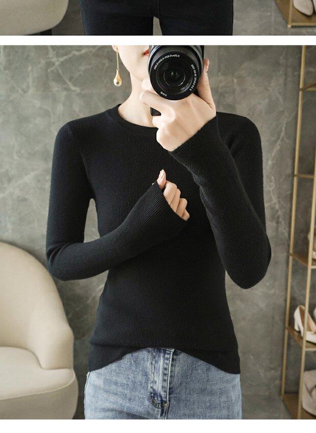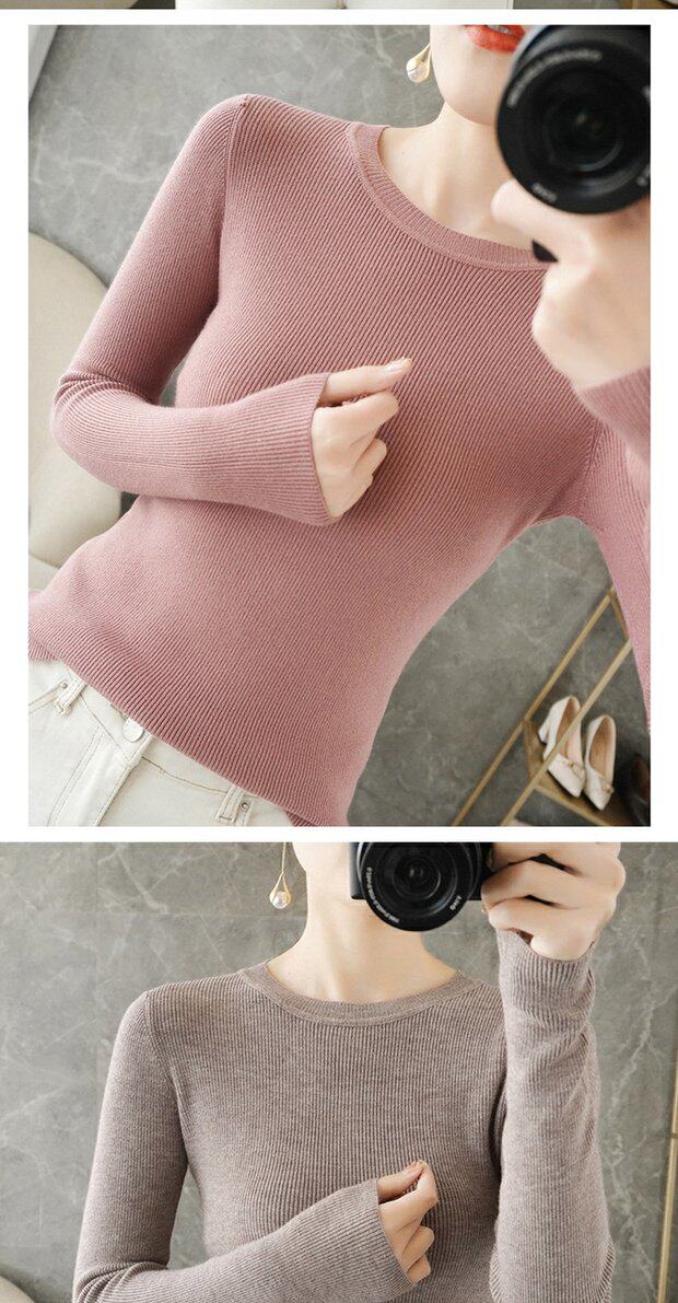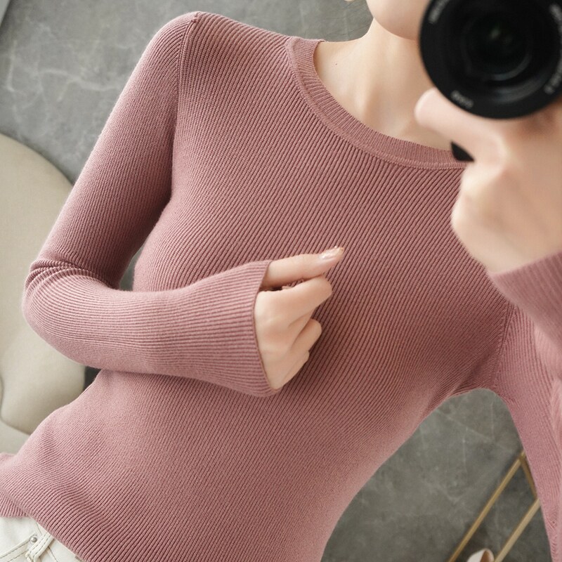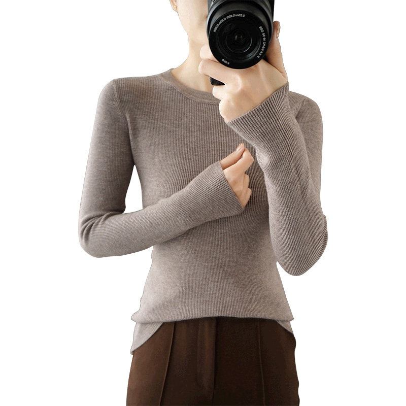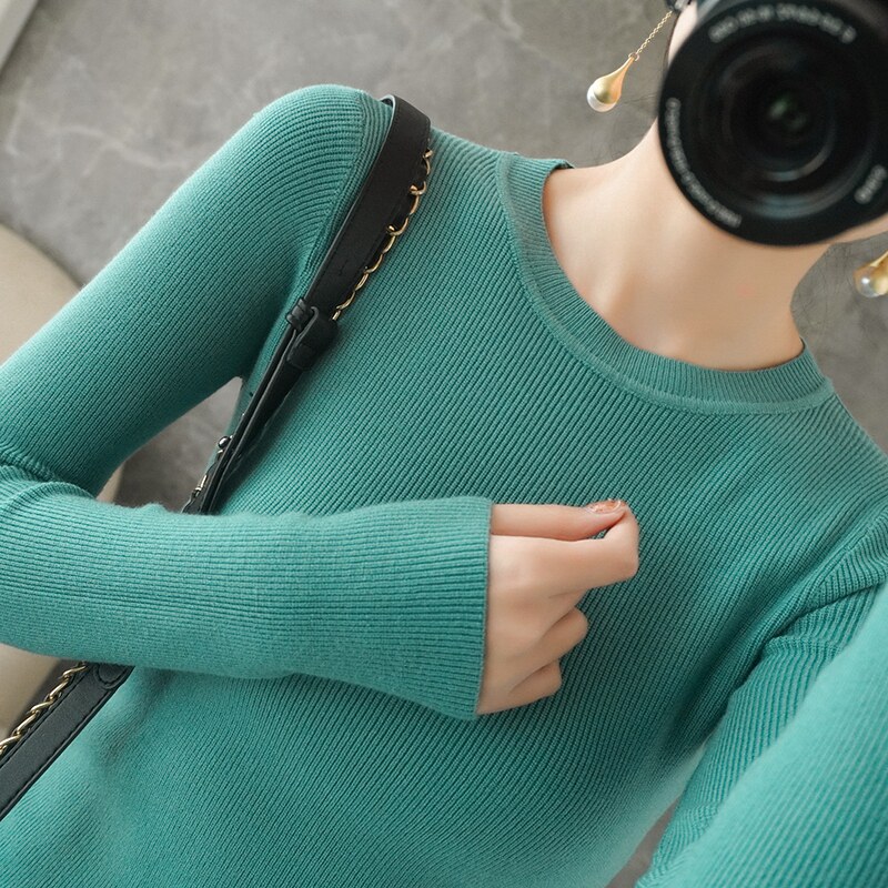 Демисезонный свитер с круглым воротником, базовый приятный телу трикотажный кашемировый лонгслив, 2020, облегающий крой, большой размер