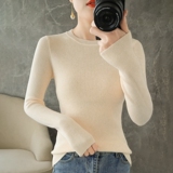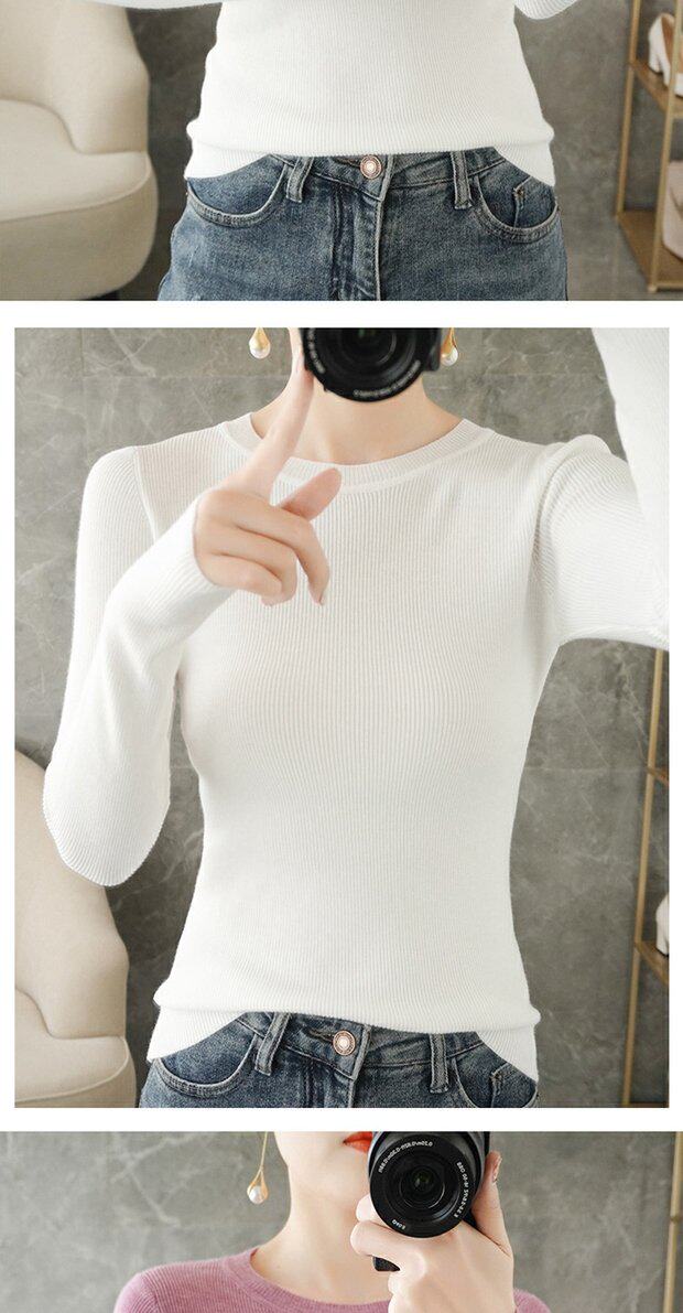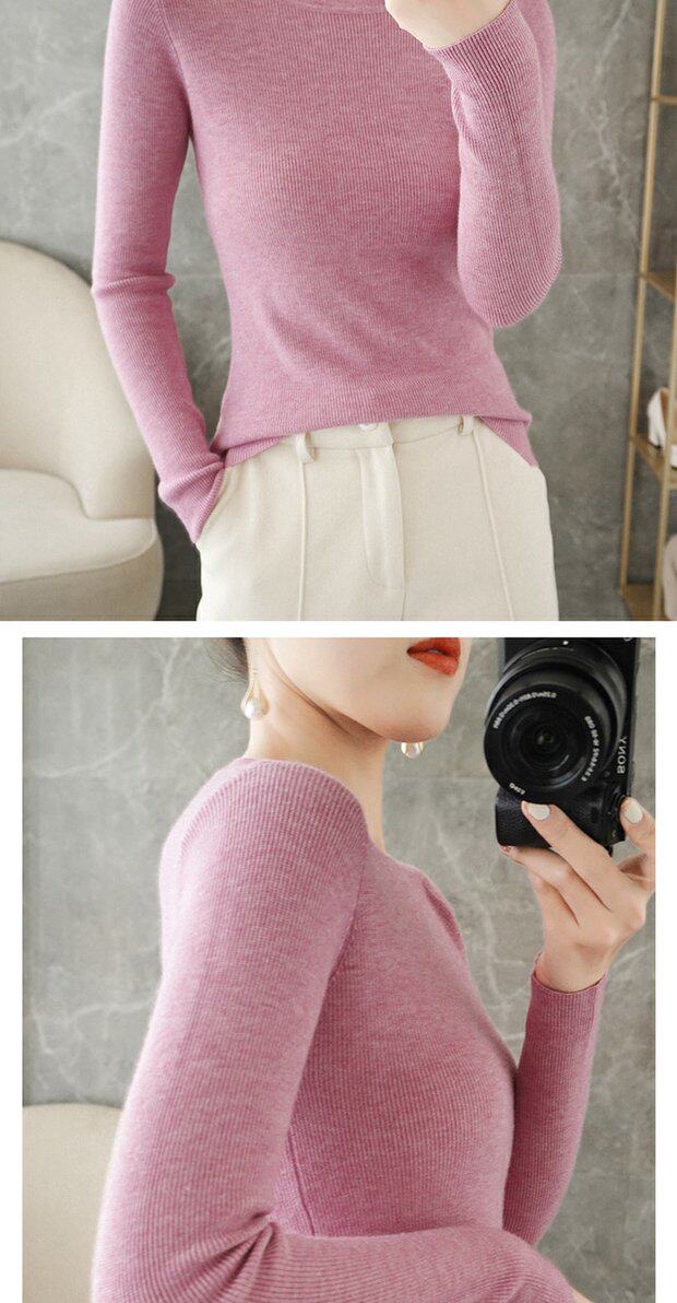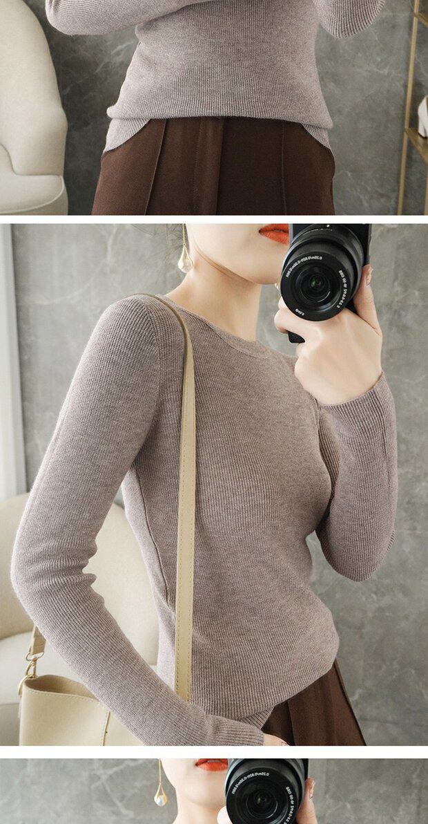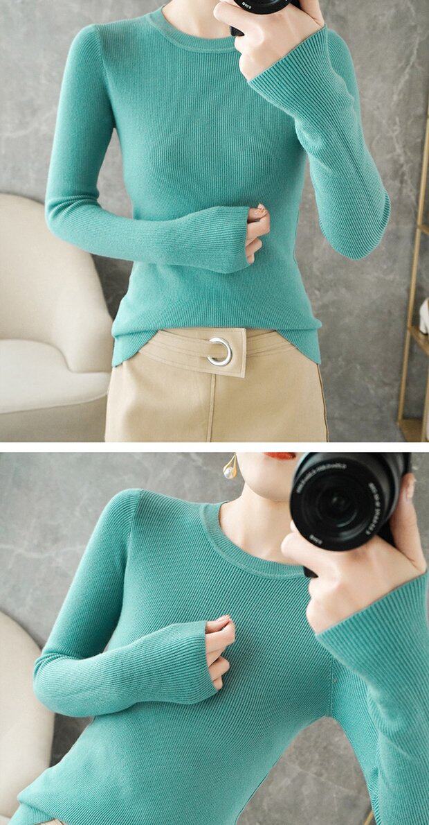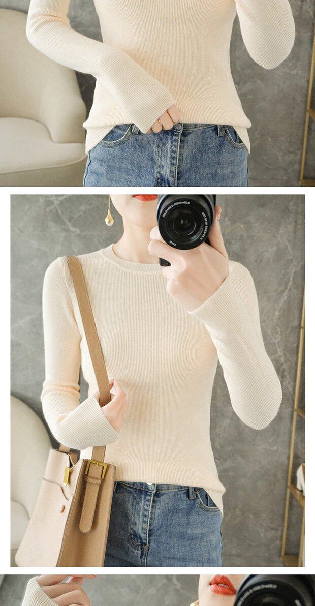 Демисезонный свитер с круглым воротником, базовый приятный телу трикотажный кашемировый лонгслив, 2020, облегающий крой, большой размер