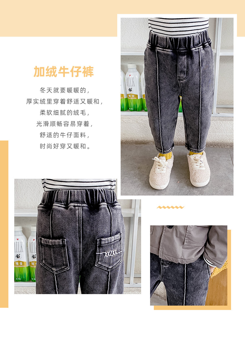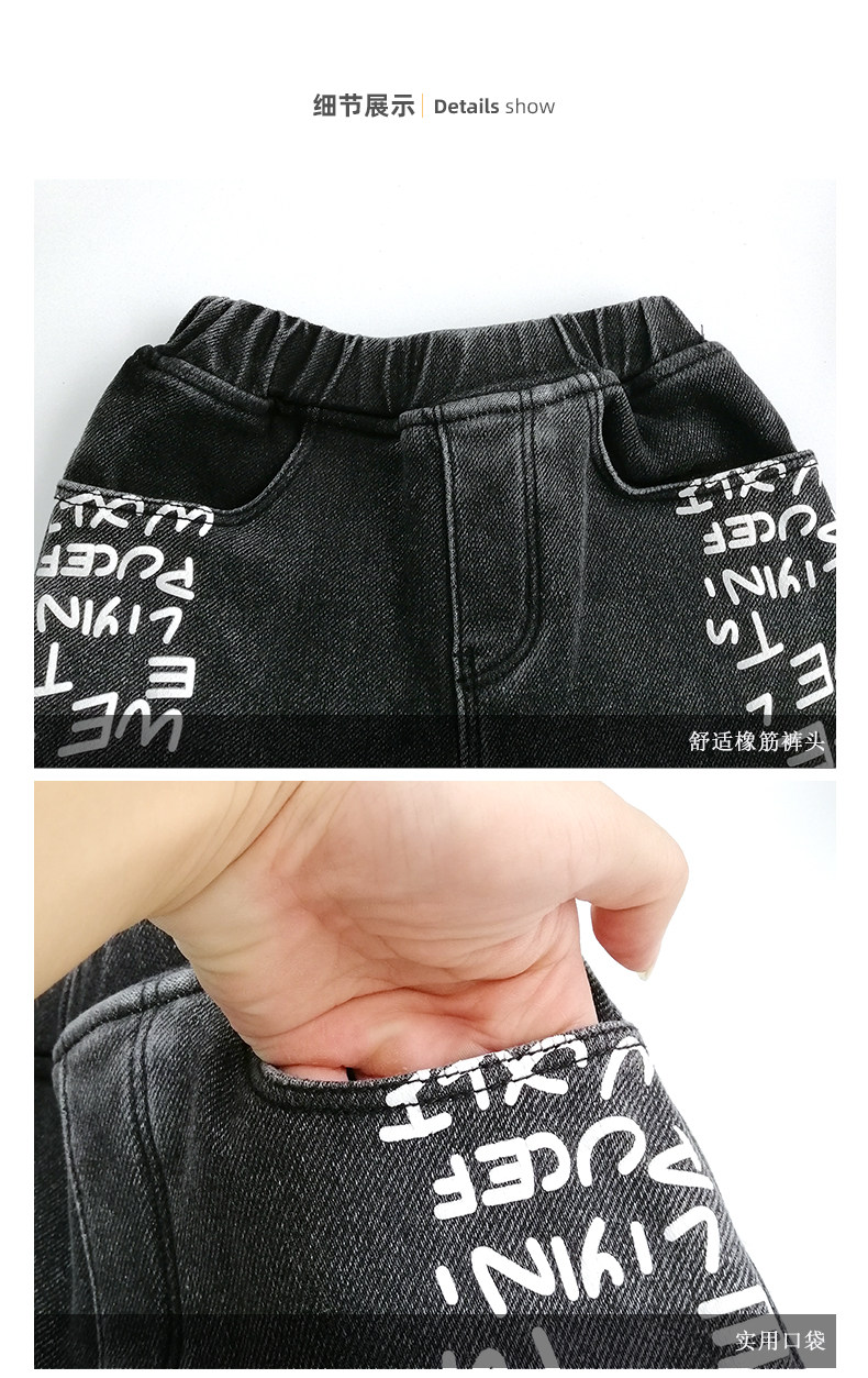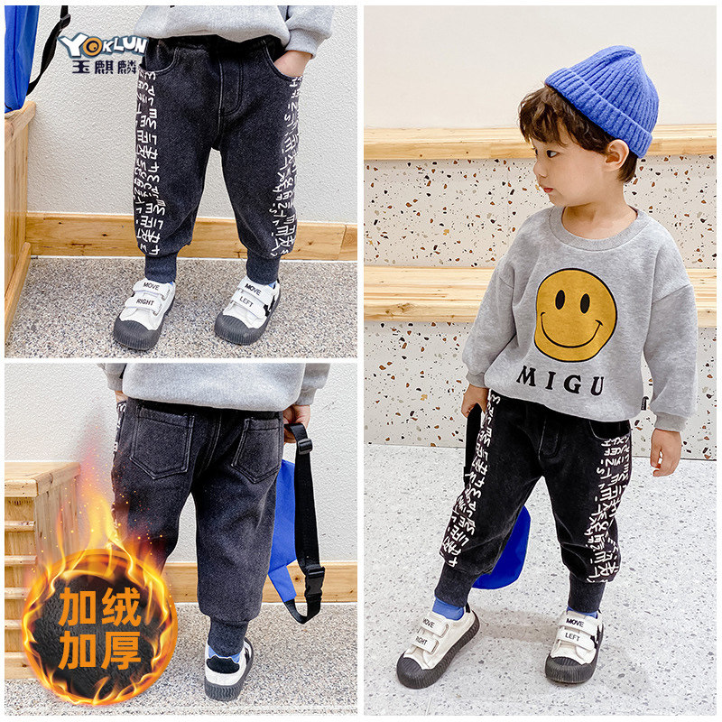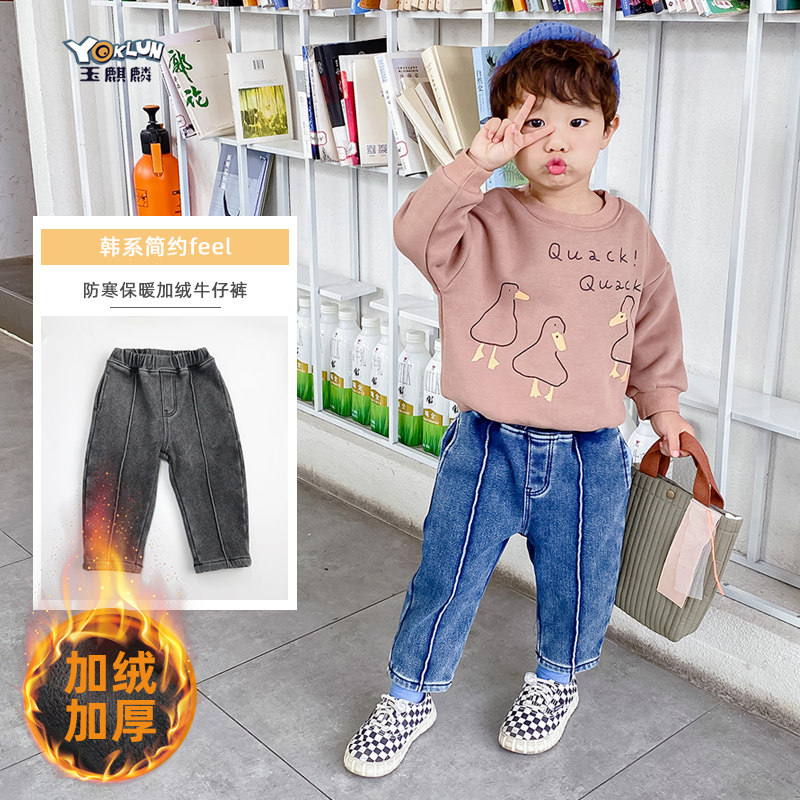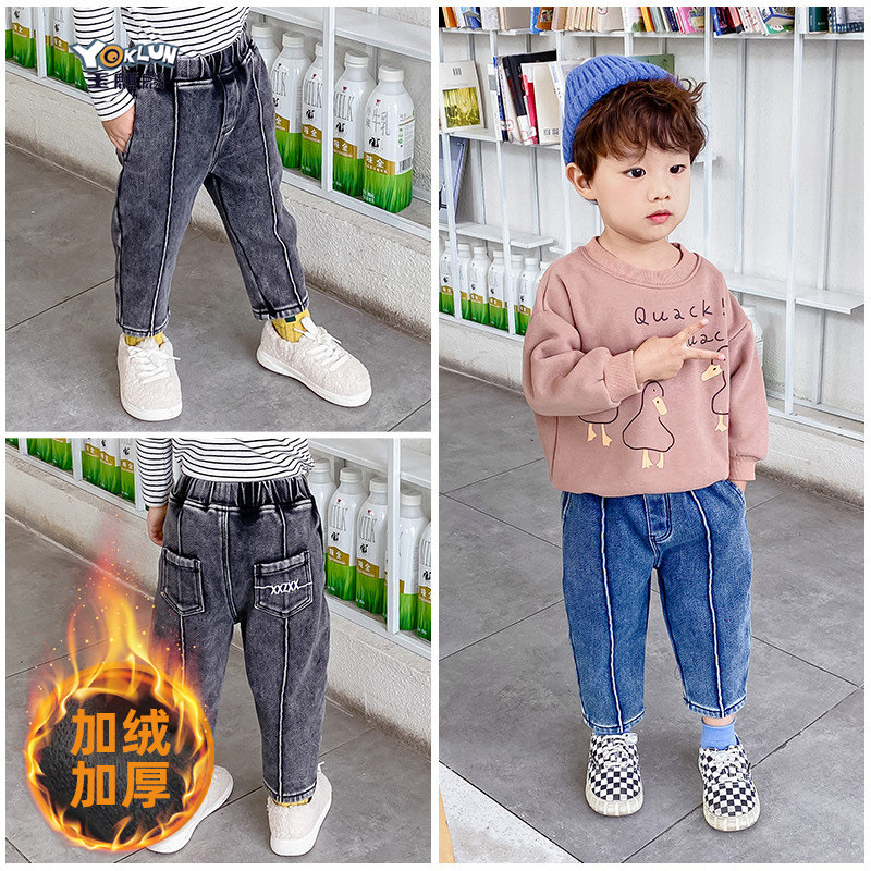 Флисовые джинсы с начесом для мальчиков, бархатные демисезонные утепленные удерживающие тепло леггинсы, зимние черные детские штаны